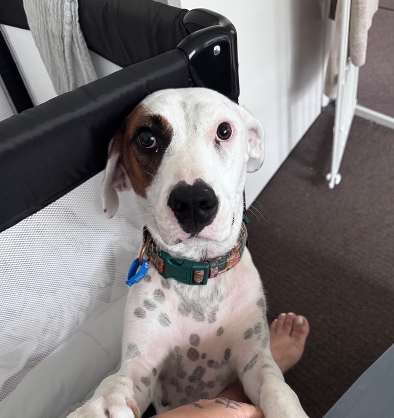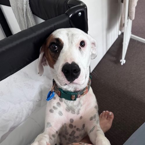 She does experience a little separation anxiety. This isn’t bad behaviour, she’s still very young (just over a year old) and emotionally sensitive. She thrives best in a home where she has companionship of another dog and humans, and reassurance.