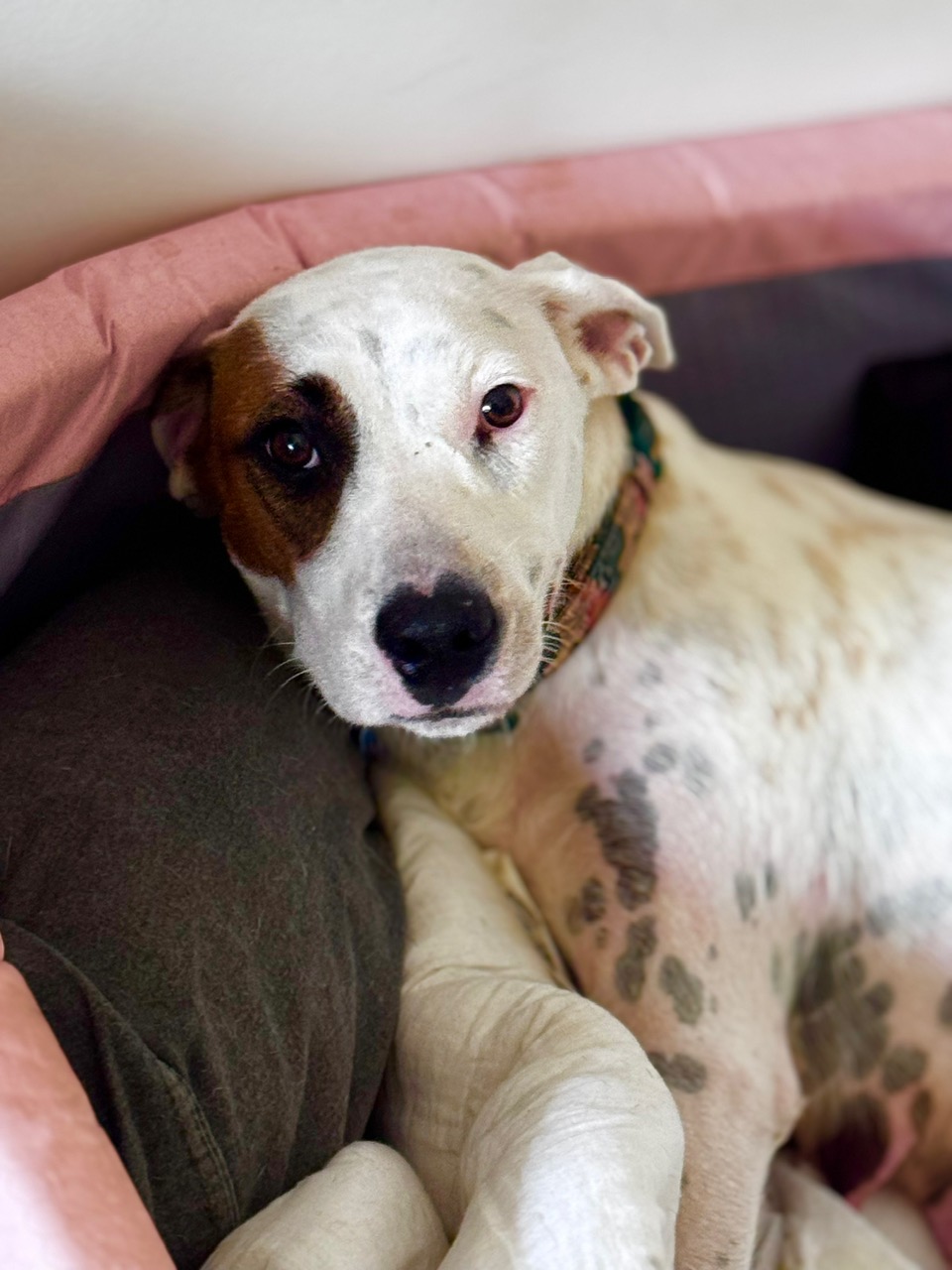 Anna is a truly special girl with the sweetest, softest temperament. She is incredibly loving, submissive, and affectionate, the kind of dog who just wants to be close to her people. She has a gentle soul, a heart-shaped nose, and a huge heart to match.