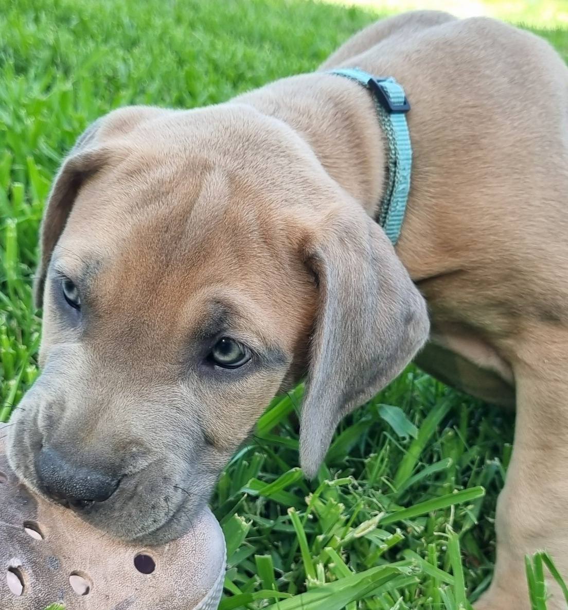 With his goofy antics, loving nature, and growing confidence, Apollo will make a wonderful addition to a family ready to help him grow into the majestic, affectionate companion Neapolitan Mastiff mixes are known to be.