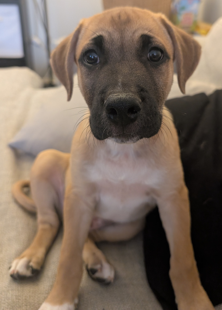 I get along great with other puppies and dogs, kids, and cats don’t bother me at all. I’ve recently discovered my voice, but I’m usually a pretty quiet kid. I prefer to save my commentary for important things like snacks.