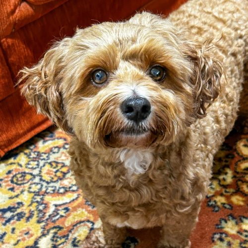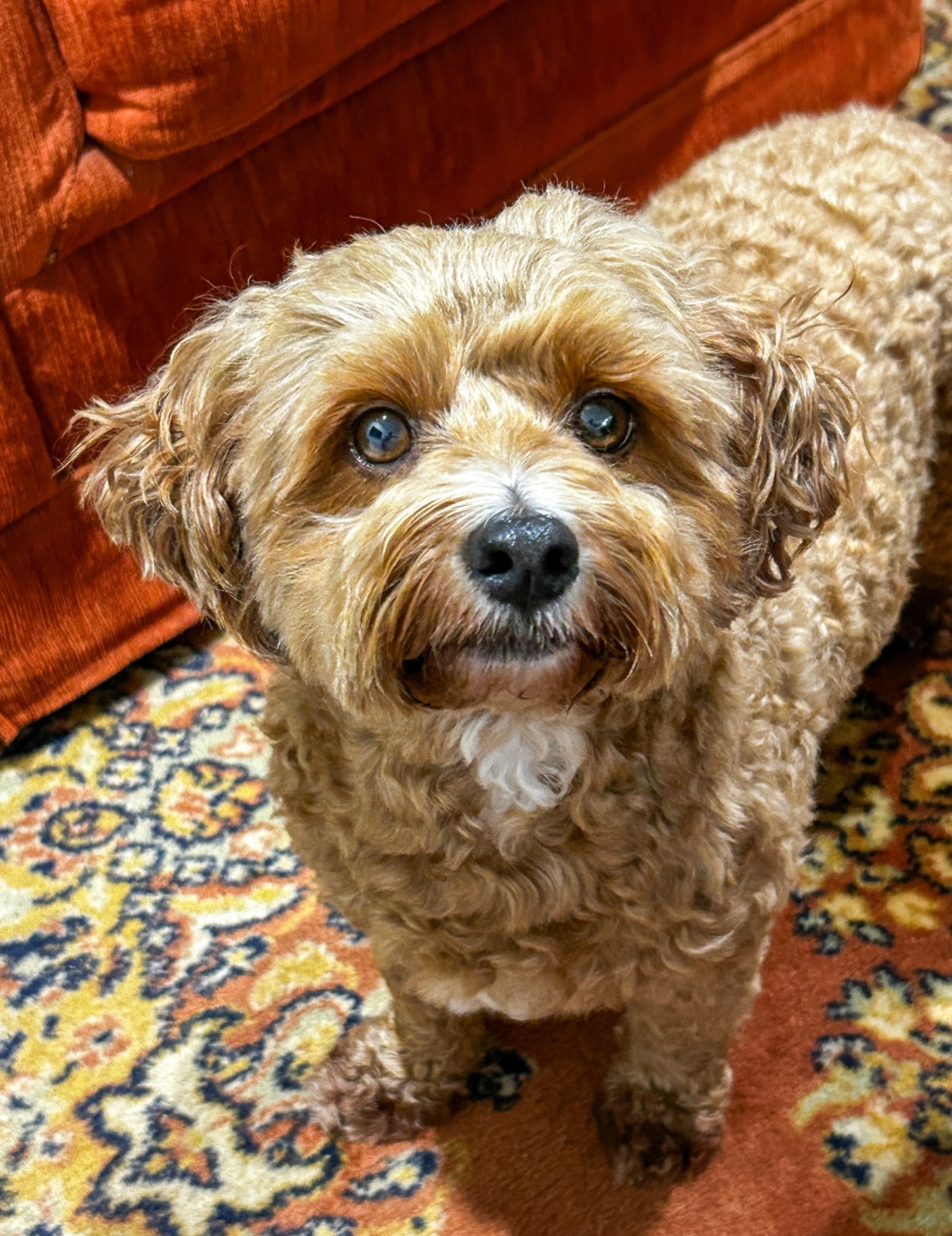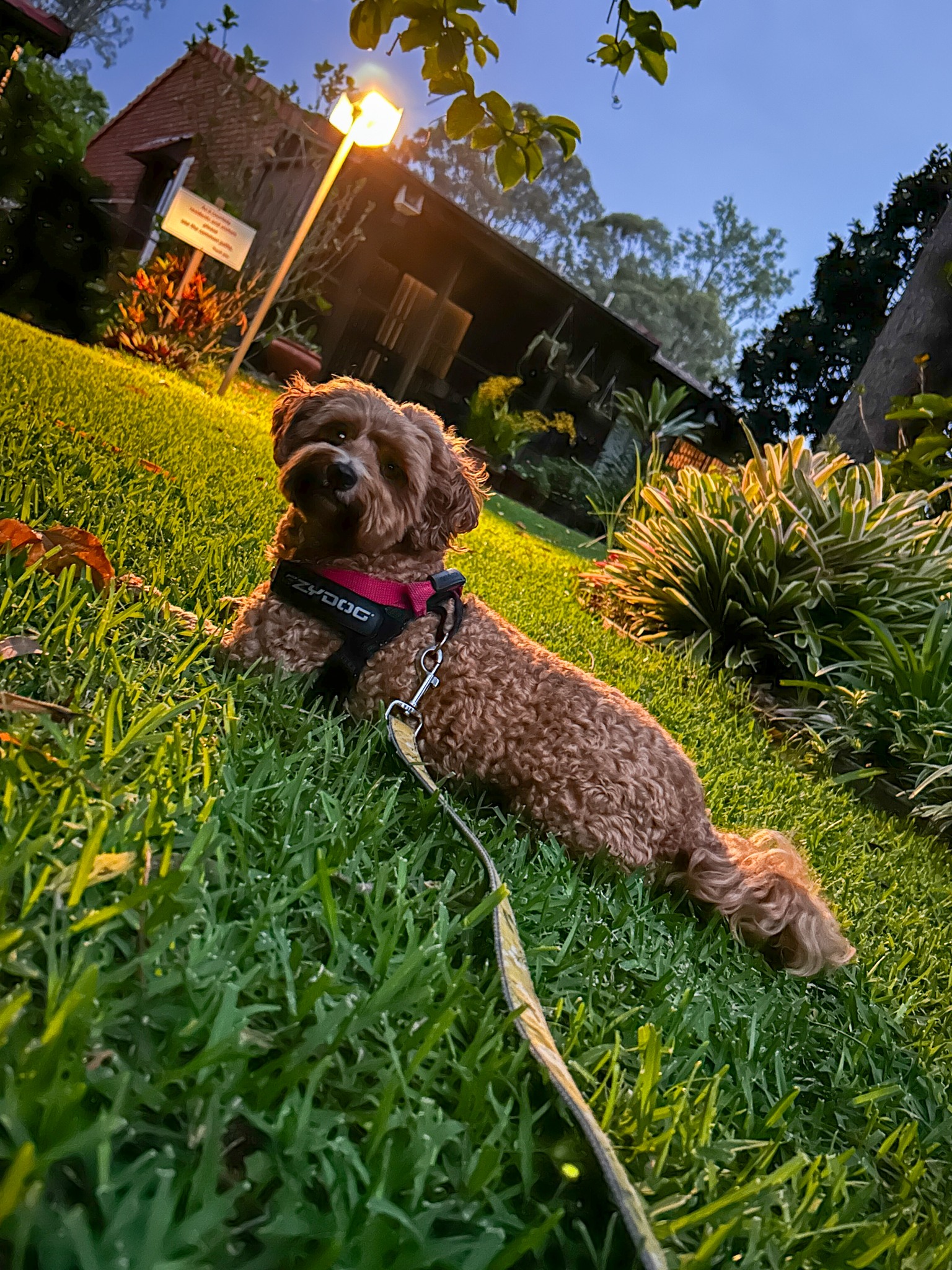 He enjoys having a puppuccino at your local coffee shop. In fact, he’d love a double if you’d allow it. He settles down quickly (after he’s said all of his hellos on the way in) and will lie at your feet in the most adorable way.