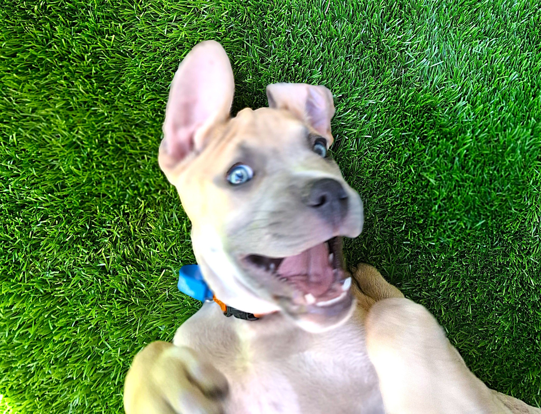 I play well with the other dogs in the house, and we wrestle and zoom around together. My foster mum says it is really funny when I get the zoomies as apparently, I may be a little clumsy and run into things or trip over my own feet!