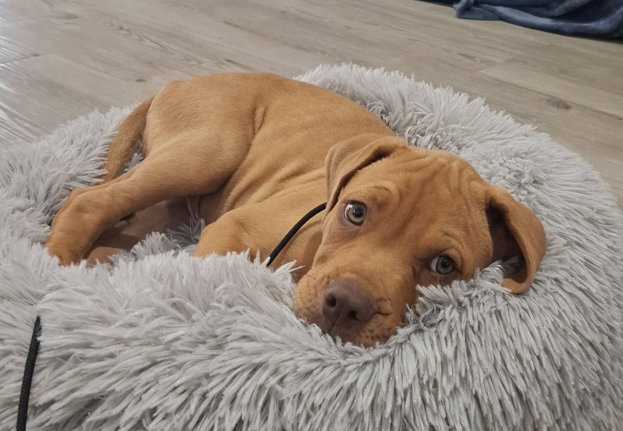 Atlas is raised in a foster environment with children of all ages and adult dogs. He is used to everyday household life — normal noise, routines, cuddles, and play. Being around adult dogs has helped him learn gentle behaviour, social skills, and emotional regulation, while building his confidence and resilience for his future home.