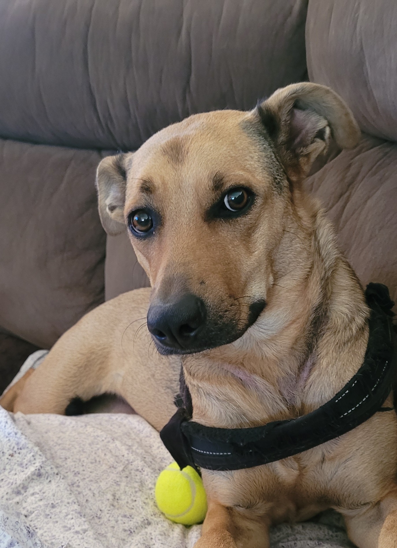 Inside the home, Bella has made herself a cozy spot on the couch – her safe haven. She’s also learned the routine and will sit at the door and “sook” softly to be let in, showing how far she’s come. She can still be a little barky when unsure of her surroundings, but that’s just her way of saying, “I’m still learning.”