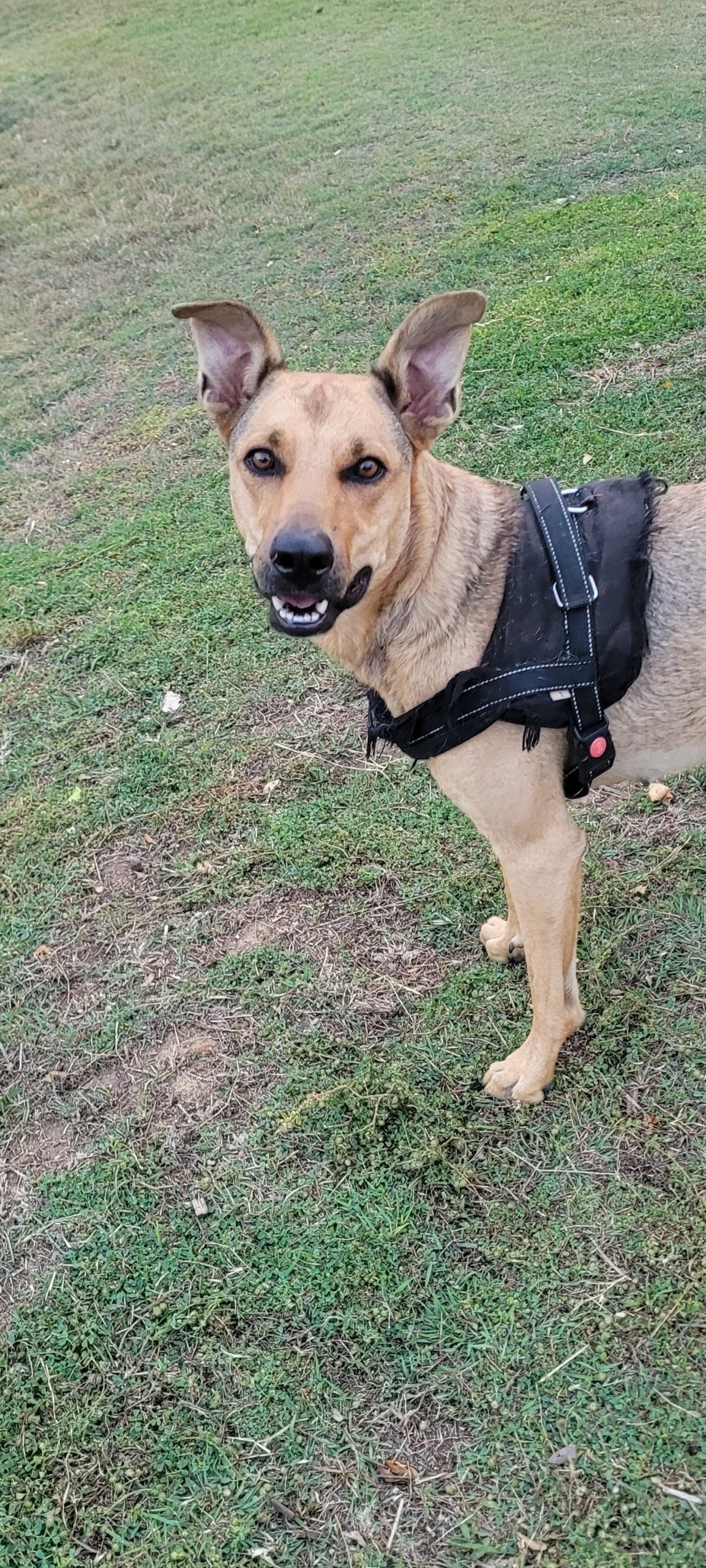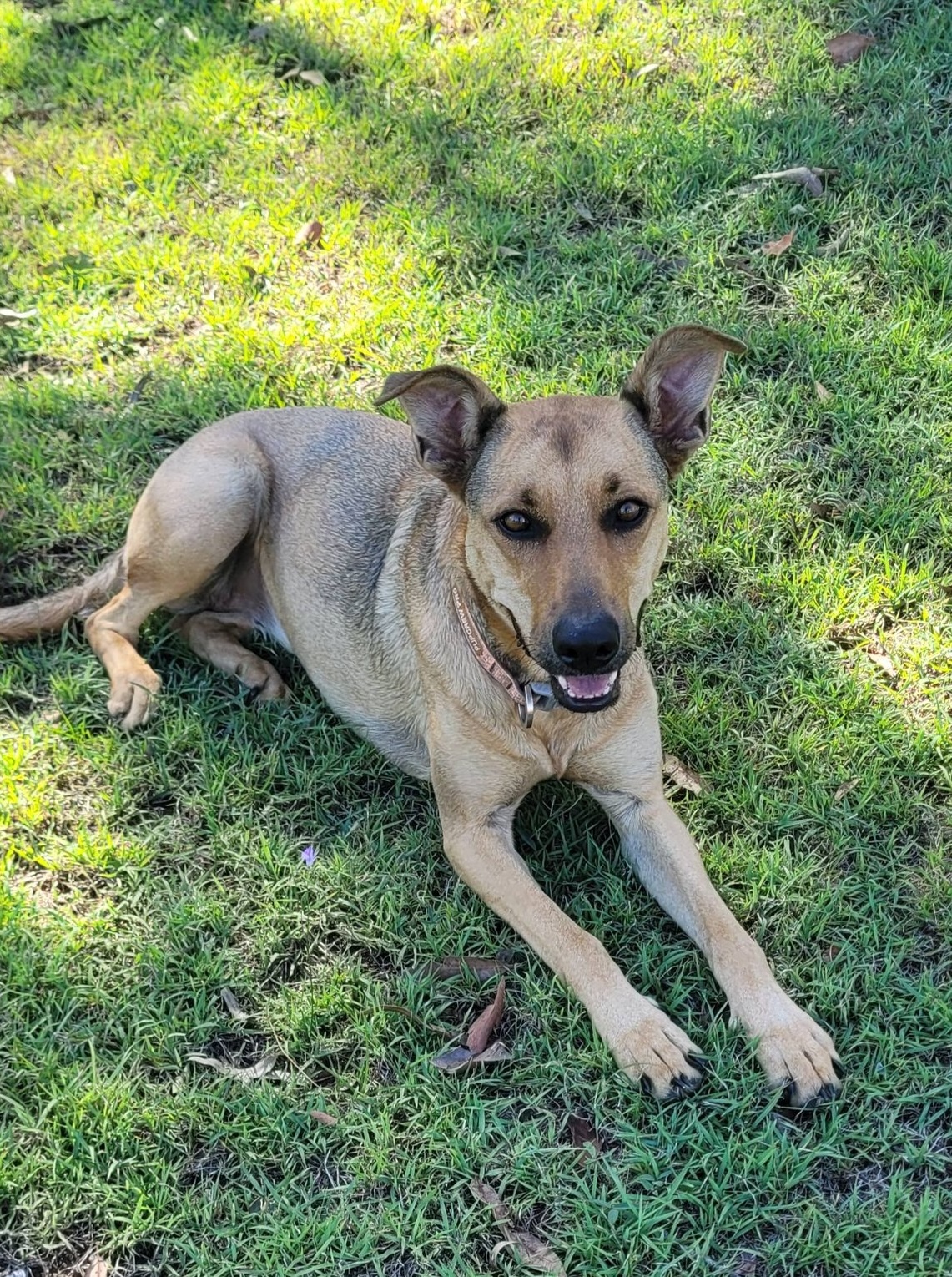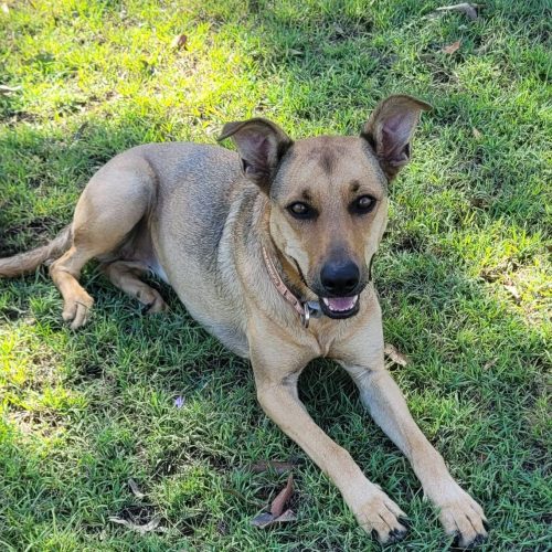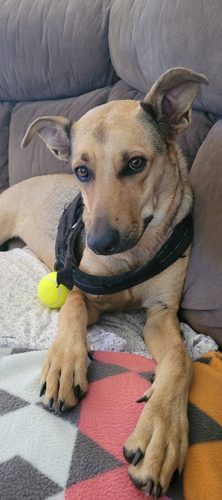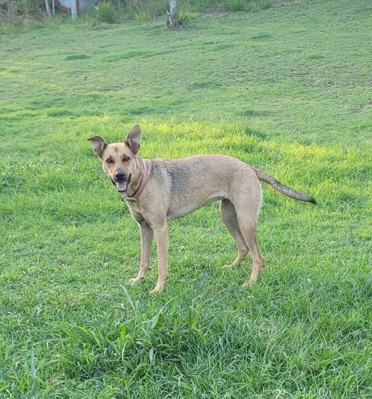 Bella is a beautiful, energetic young girl who absolutely loves to run, wrestle, and play! Whether it’s a game of chasy with her doggy mates or sprinting joyfully down the back paddock, Bella lights up when she's out in the open. With the biggest smile on her face, she’ll dart back and forth, soaking up every moment. She’s also toilet trained and is starting to enjoy toys – a big step in her journey of learning how to just be a dog.