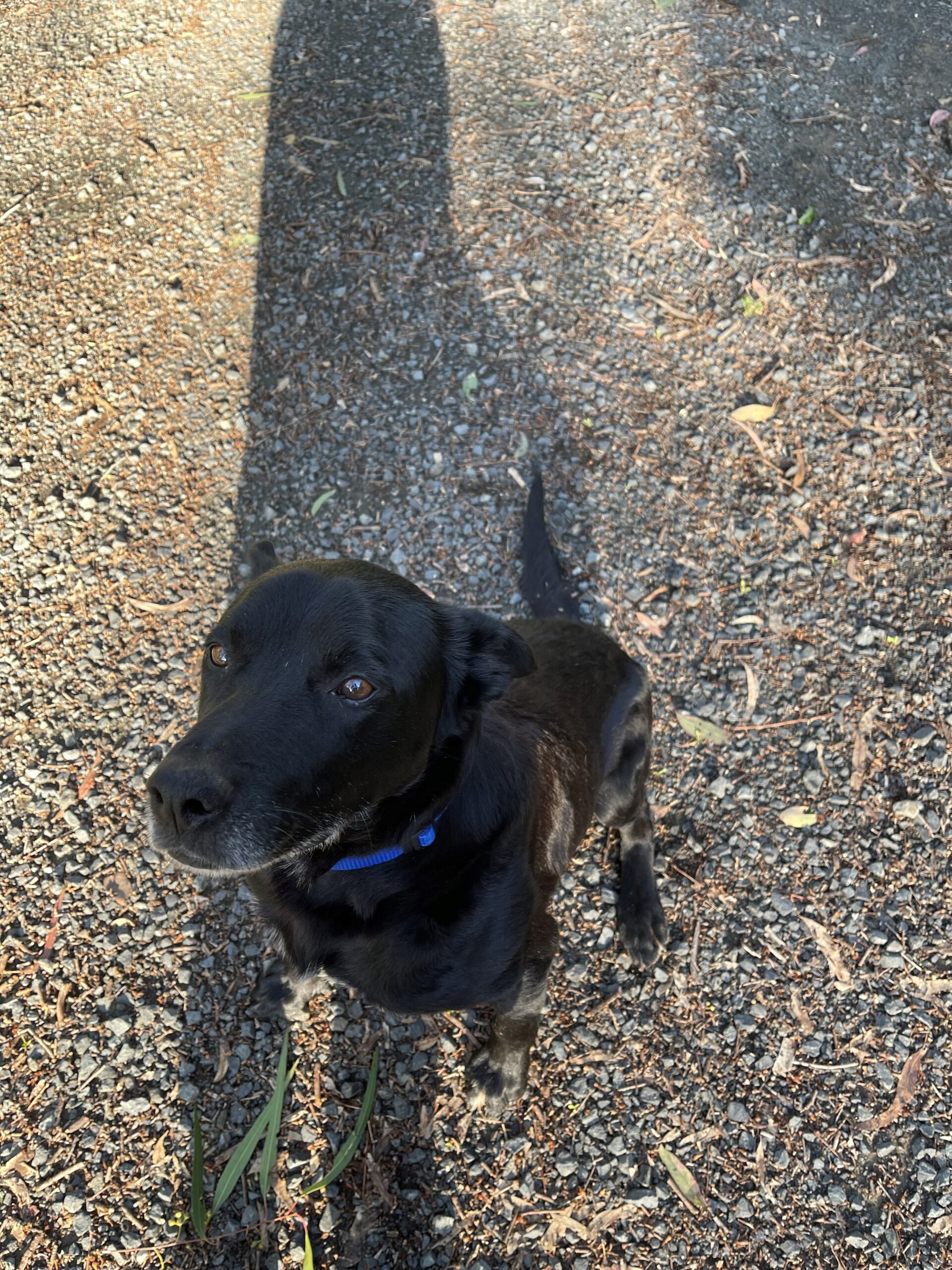 He loves walk time and a swim when given permission, he does not pull on the lead at all just happily walks with you until there is something to smell and investigate on the trail.