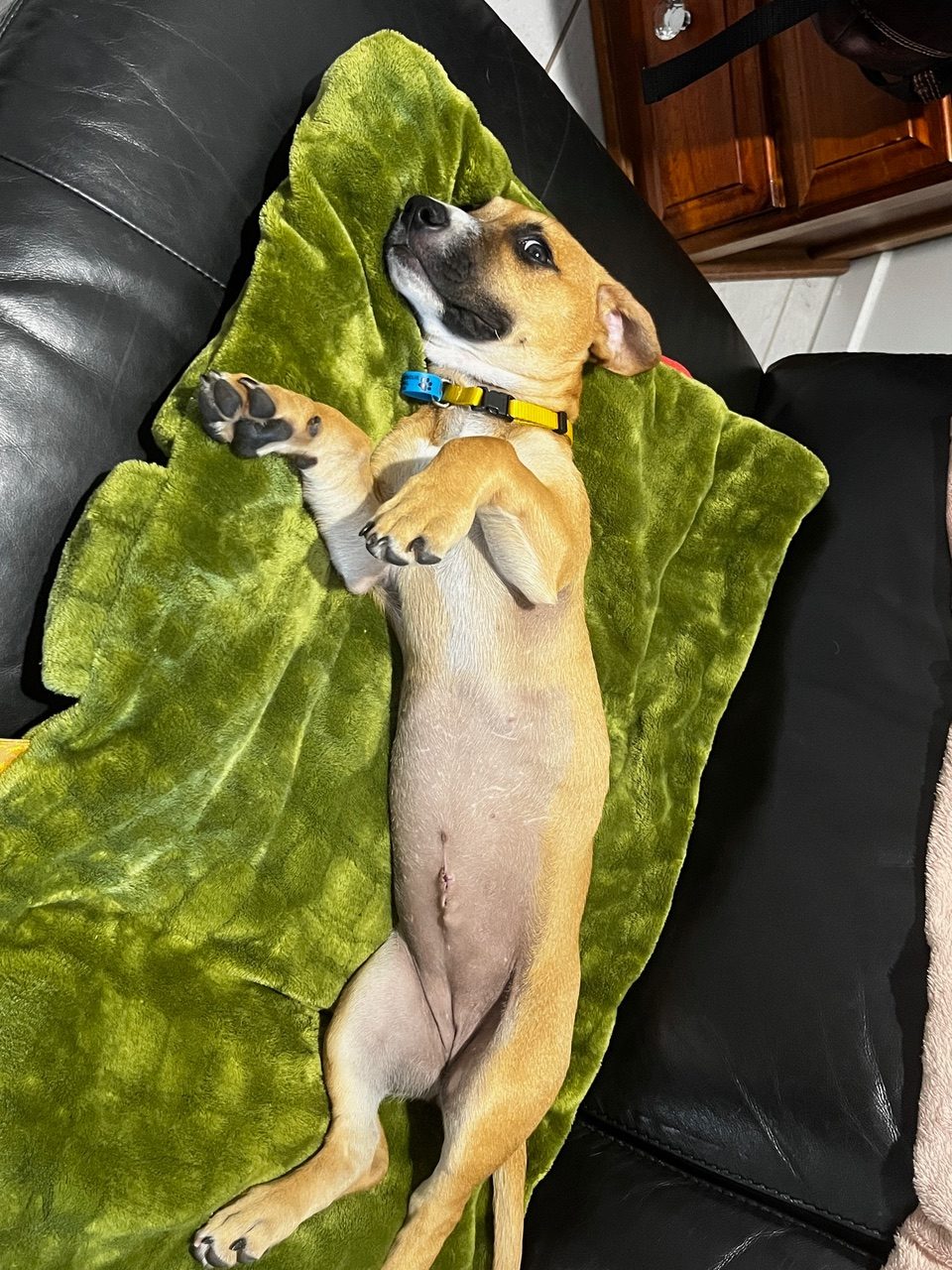 She's loves playing with her foster bother, learning new things, and relaxing with her foster family. She is great with children and other friendly dogs. She is progressing very well with her toilet training and sleeps quietly on her bed overnight.