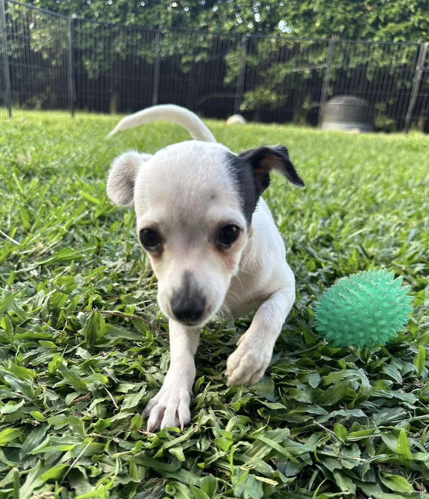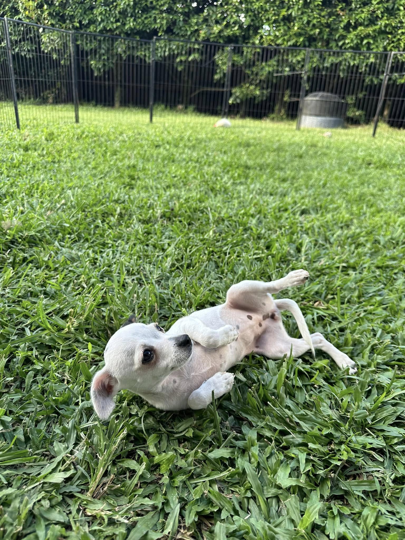 I am learning to come to my name and get very excited seeing my foster brothers and sister dog and the cat I am fine with also it’s just the chickens I’m not quite sure of so far.