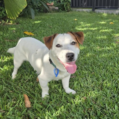 Bowie is a typical Jack Russell — enthusiastic, happy‑go‑lucky, and full of life. He’s a young, bouncy boy with a joyful outlook and a heart bursting with affection.