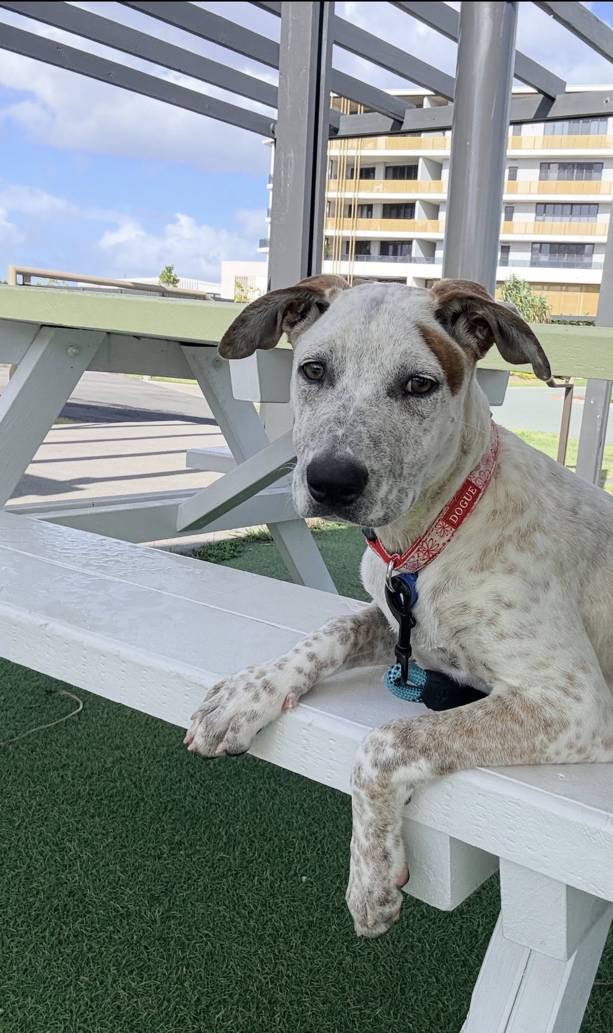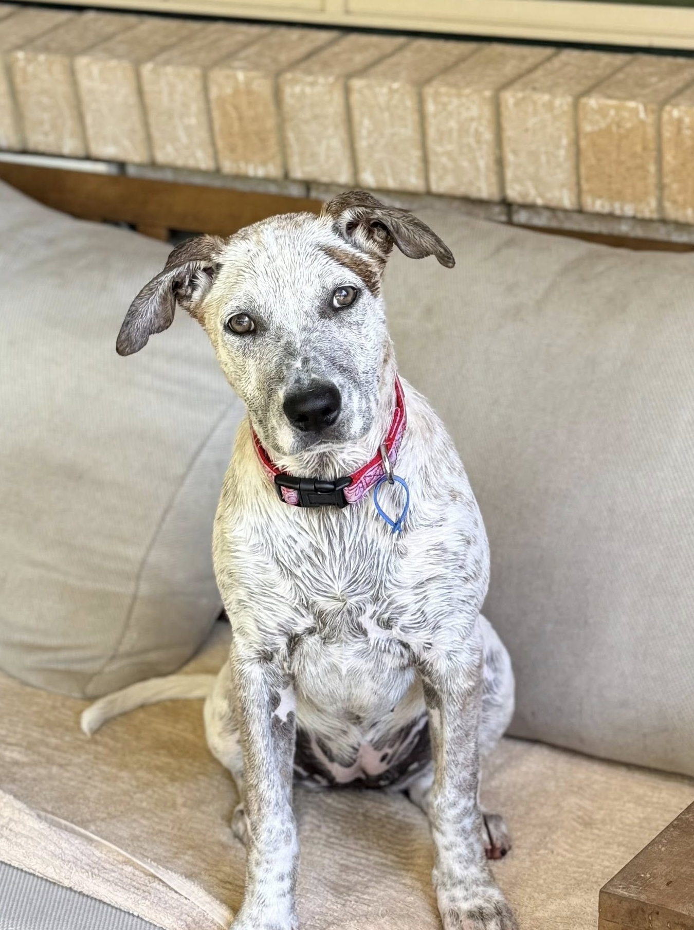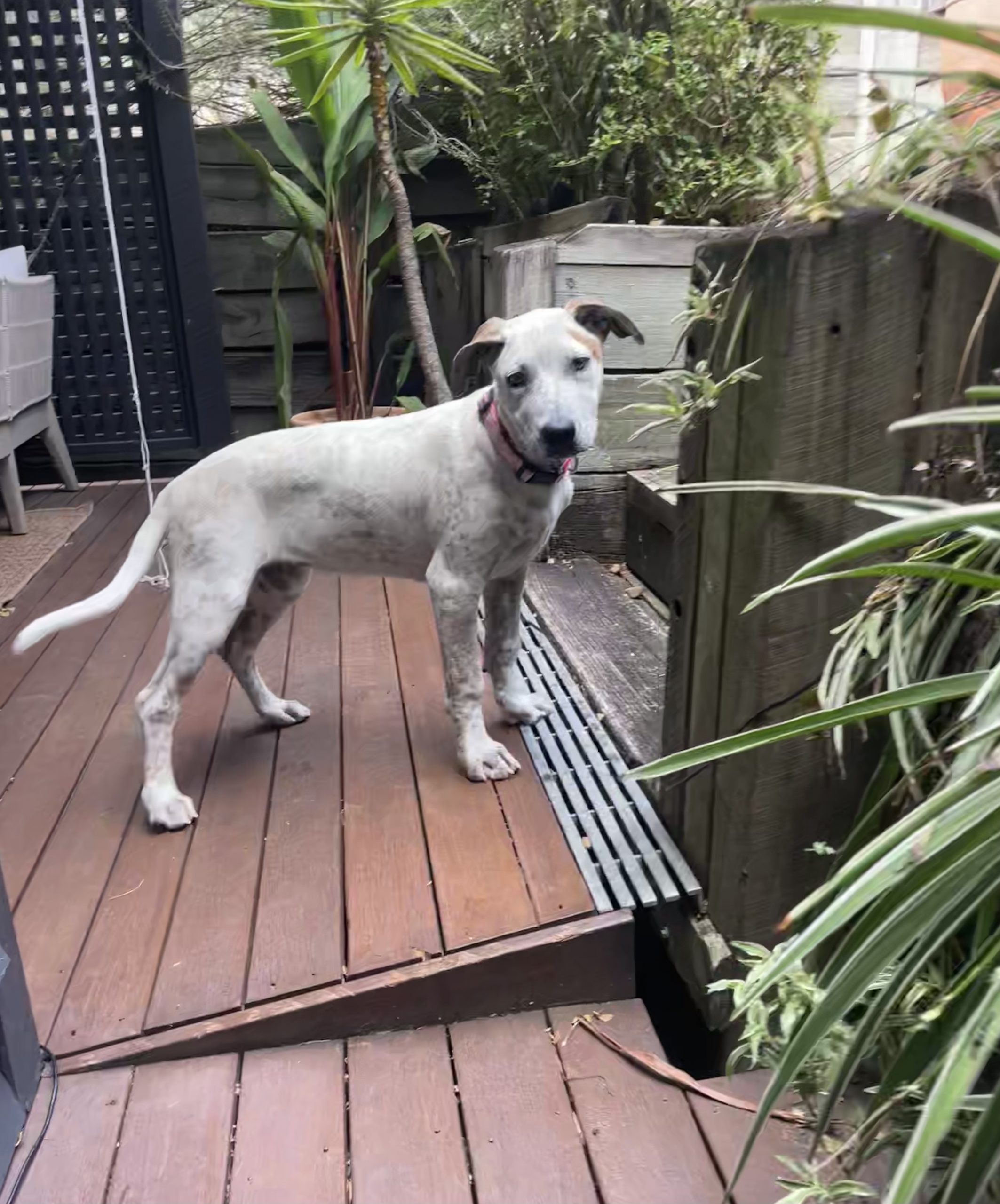 Brandy is a water baby, happy to chase a hose as you water the garden and isn’t scared to jump into a clam shell pool full of water and have a blast splashing her excitement away.
