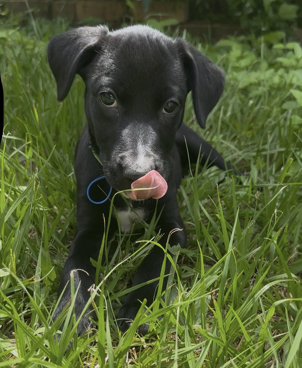 Candy is a confident and energetic explorer. She’s full of personality and always ready for playtime, whether that’s chasing toys, running around the yard, or playing with her sister and her human foster siblings.