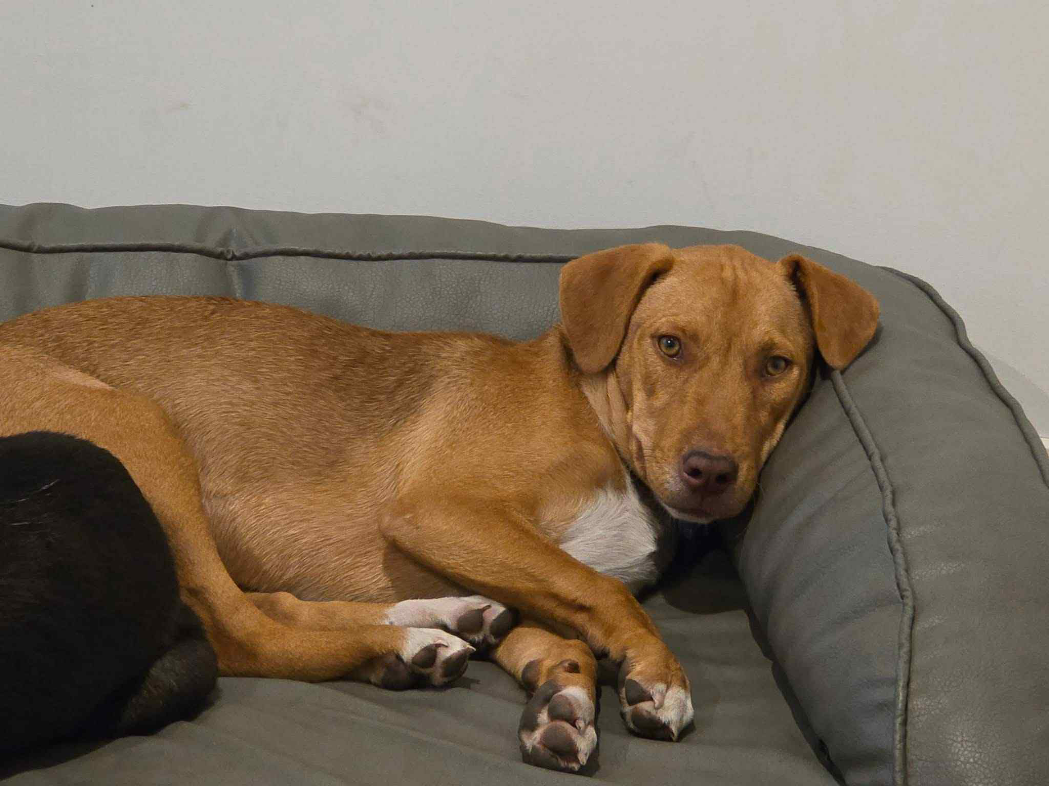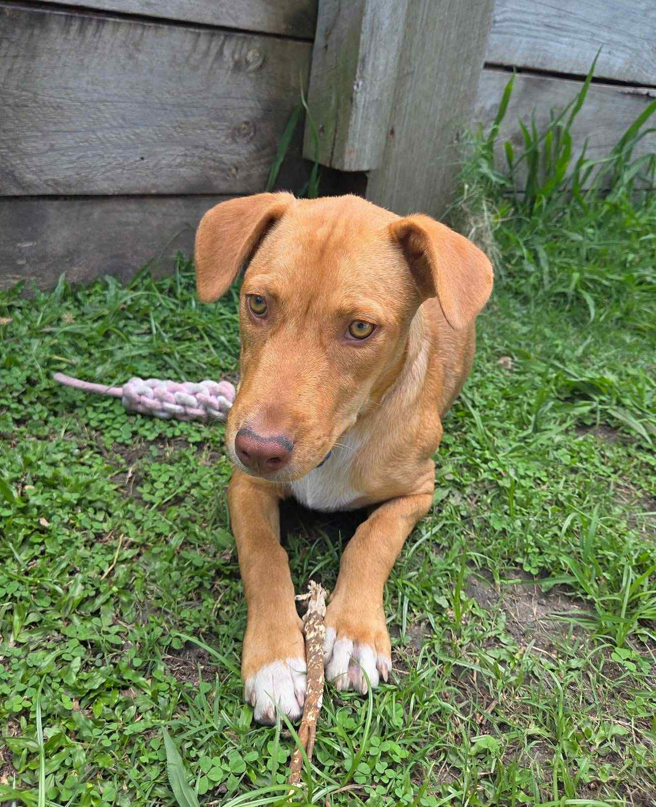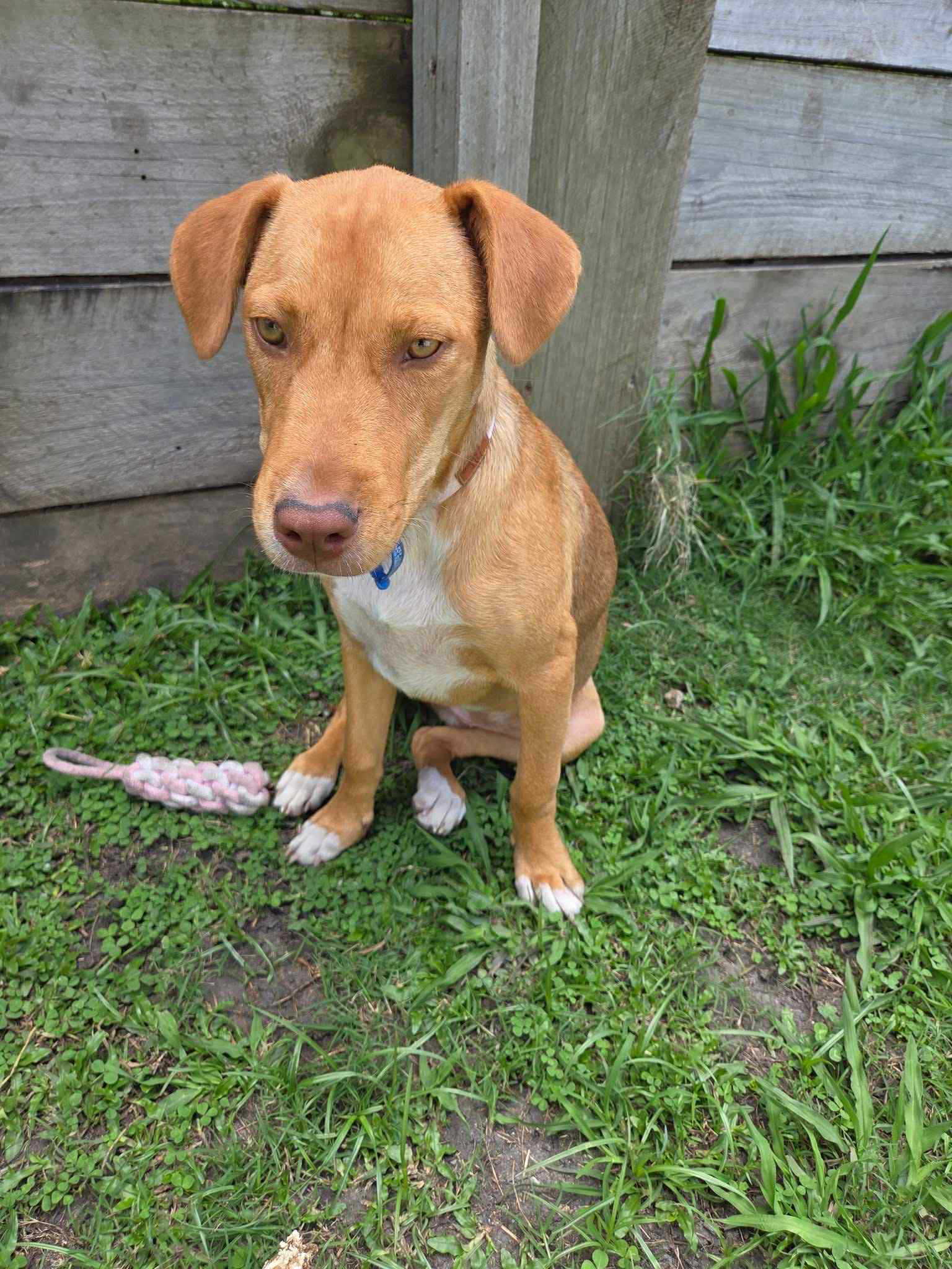 At first she can be a little shy and unsure, especially around new dogs. Afterwards she loves running around and playing chase!