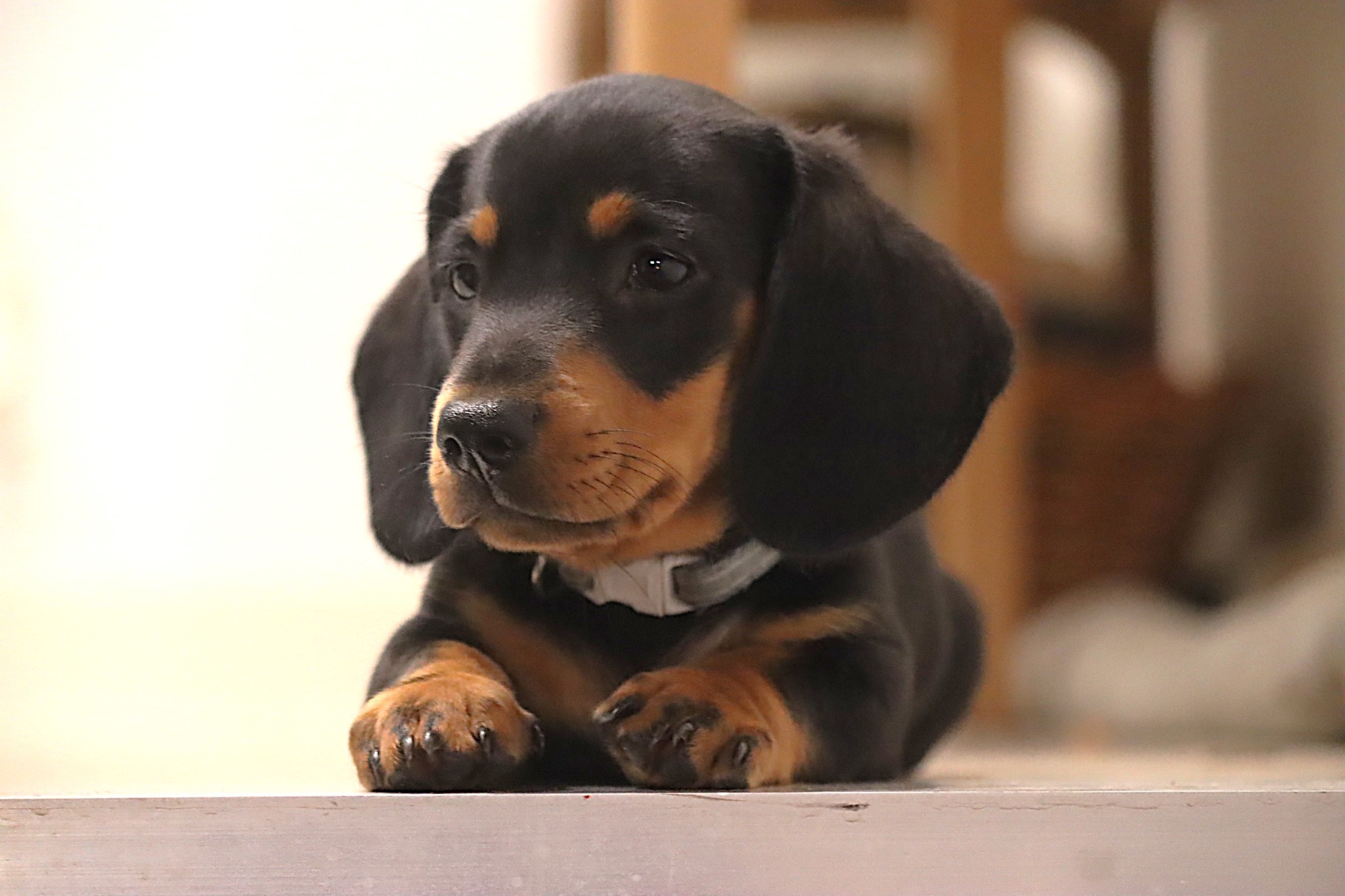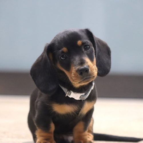 This adorable male Dachshund puppy is full of confidence and curiosity. He may be tiny, but he has a big personality — always ready to investigate new things and take on the world with his bouncy little stride.
