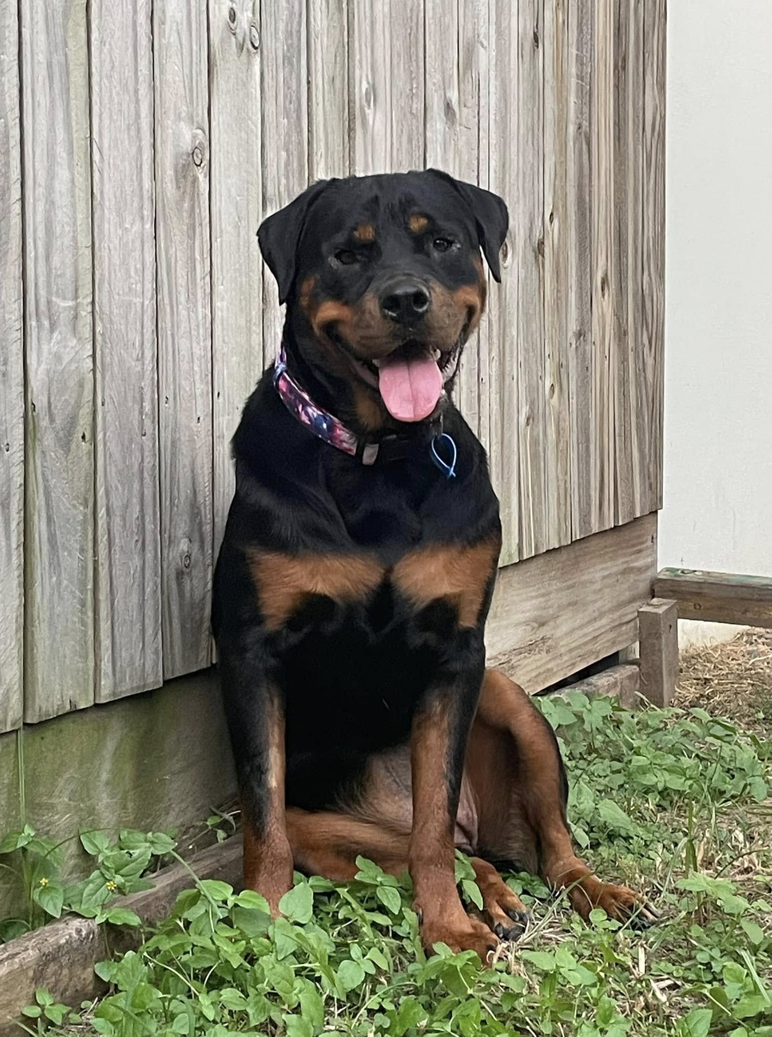 She didn’t have the best start in life, but she’s making wonderful progress every day. She’s still learning her basic commands, like “sit,” and will thrive with someone patient and willing to continue her training.