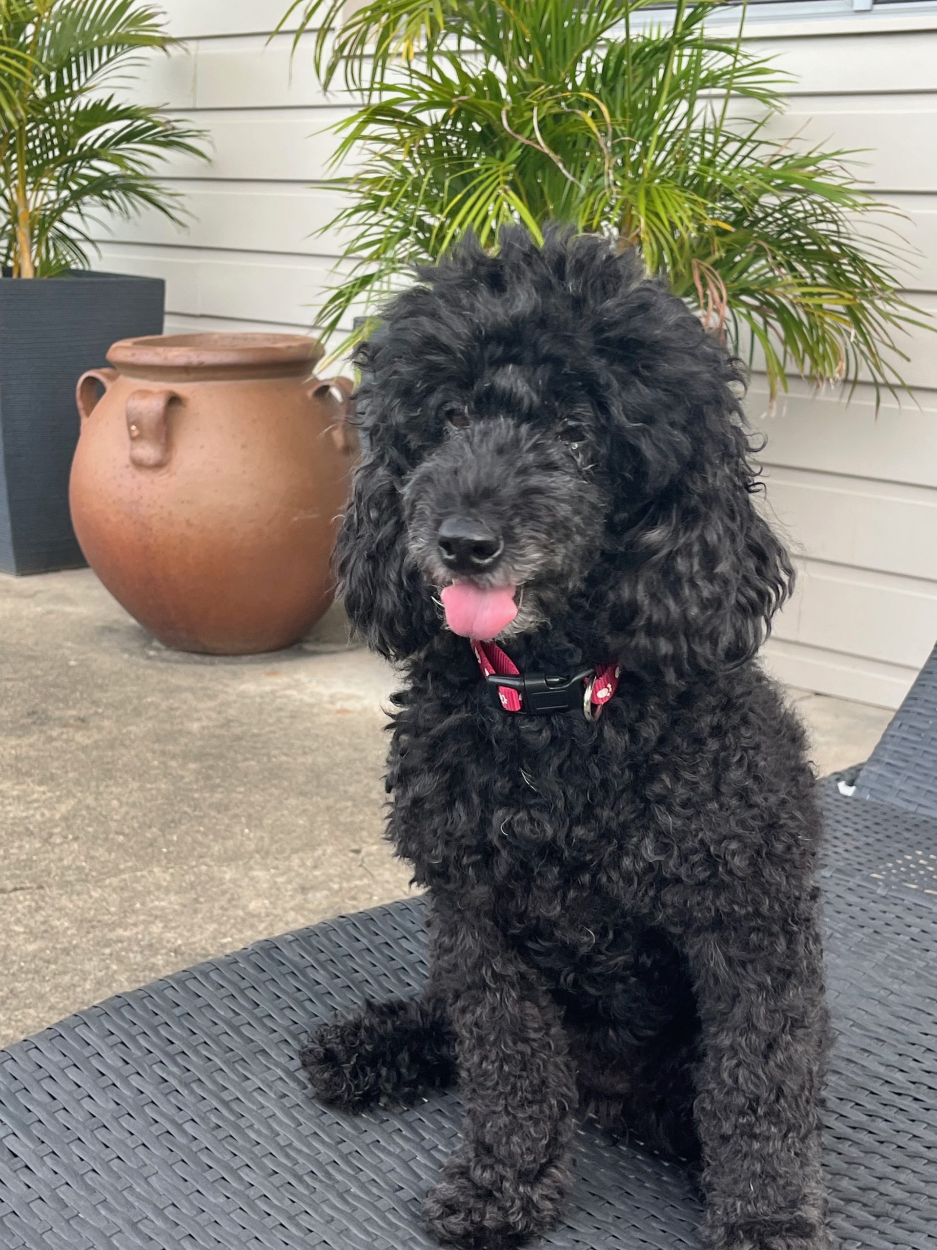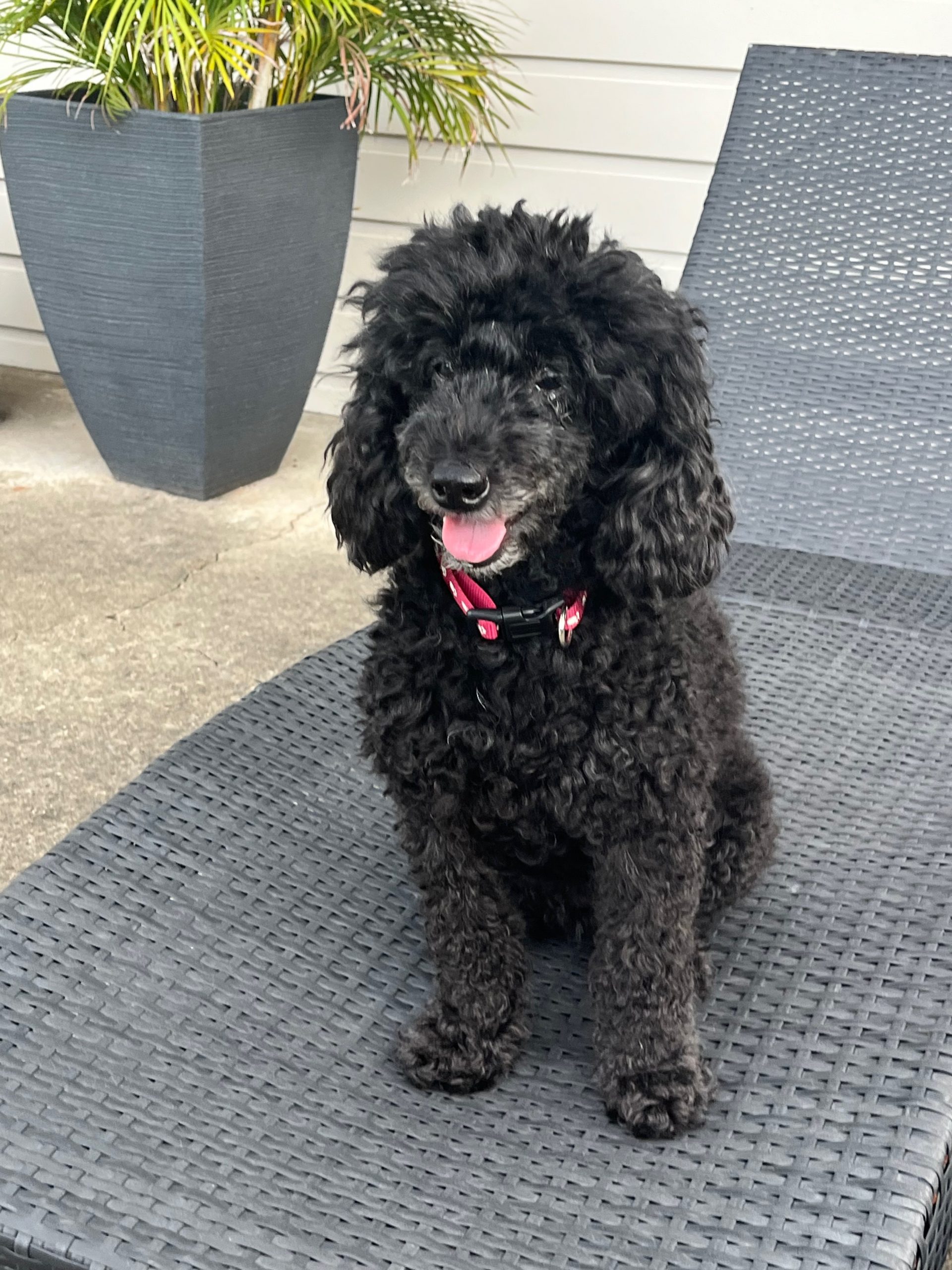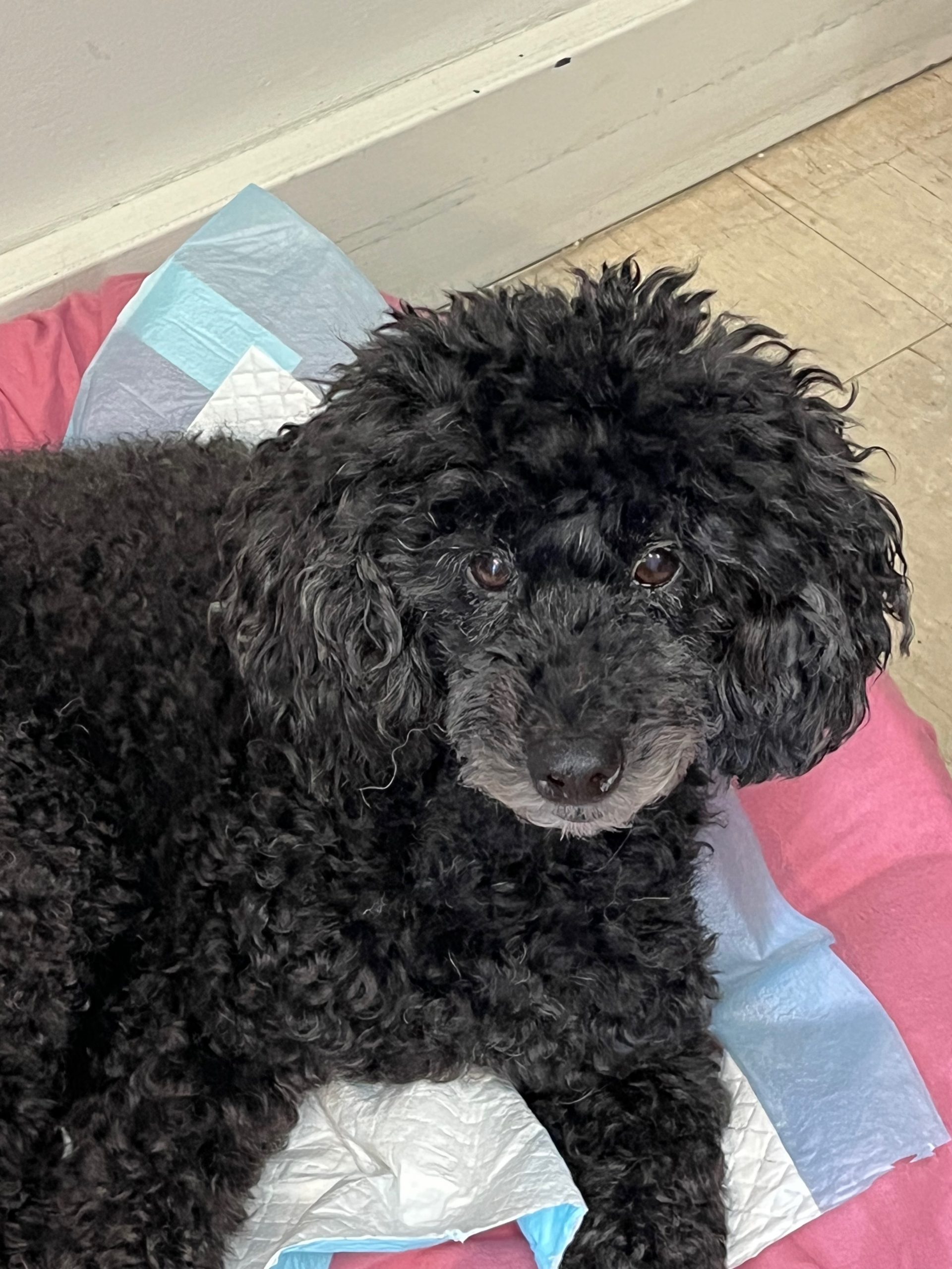 Ebony is a stunning 9-year-old poodle with a heart full of love and loyalty. She may seem a little reserved at first, but don’t be fooled – once she decides you’re her person, she’ll stick to you like glue and never let you out of her sight.