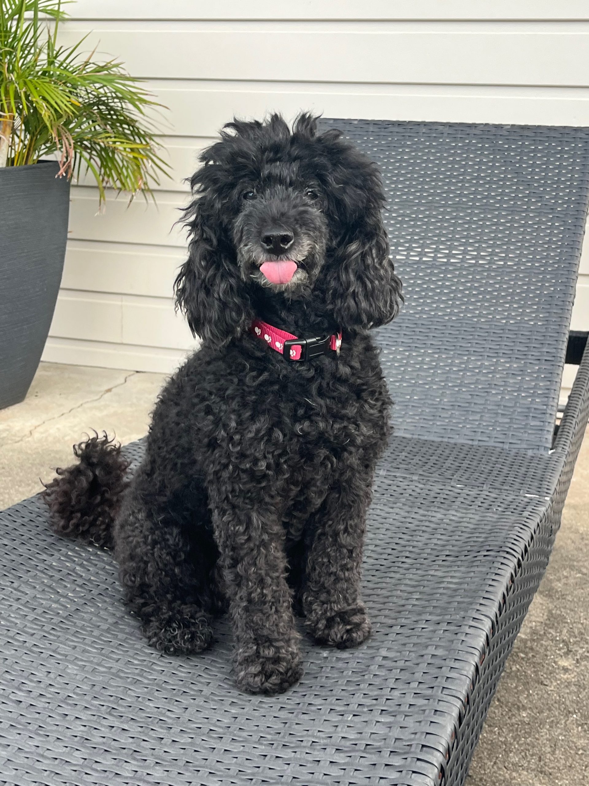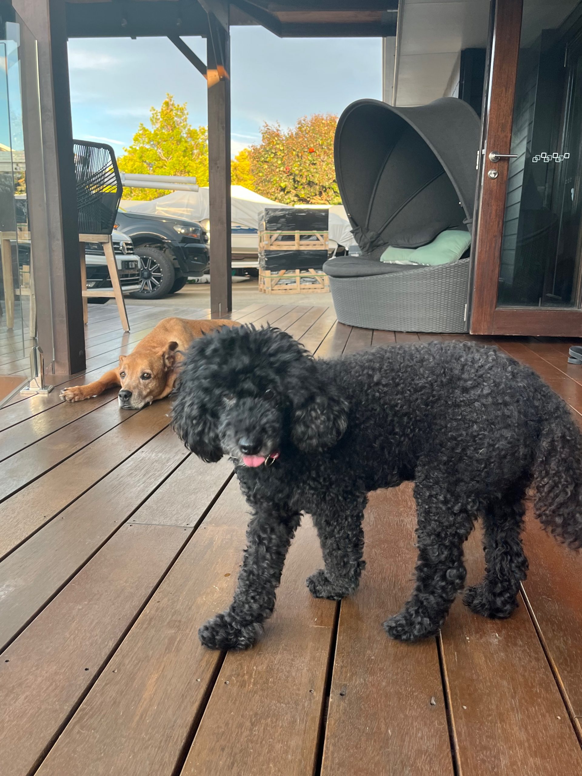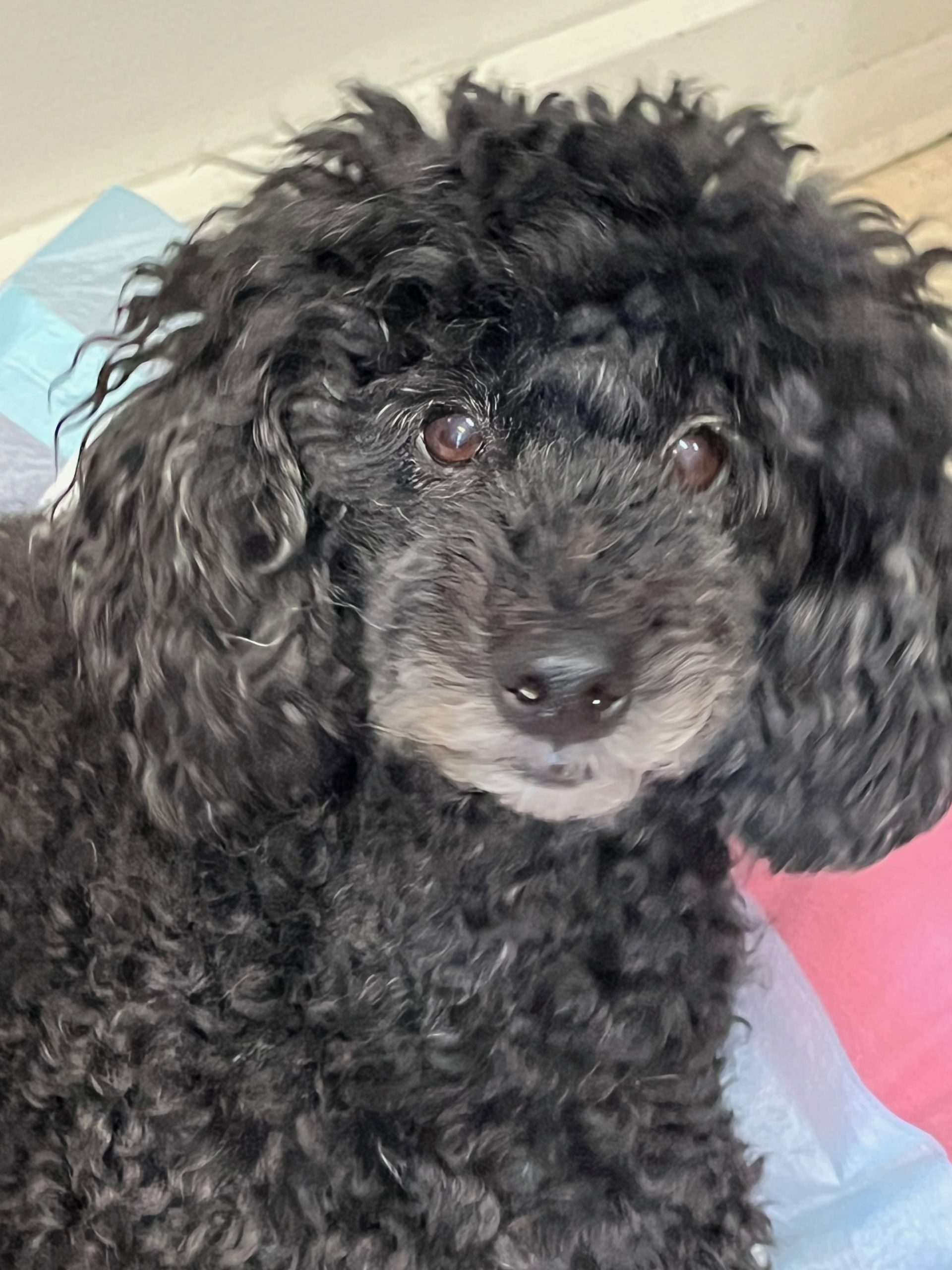 Ebony is a stunning 9-year-old poodle with a heart full of love and loyalty. She may seem a little reserved at first, but don’t be fooled – once she decides you’re her person, she’ll stick to you like glue and never let you out of her sight.