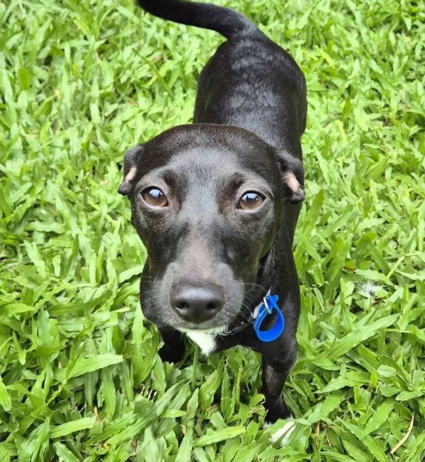 Hi, I'm Ebony. I'm a shy, affectionate, playful girl who loves snacks, lap cuddles, playing with my little foster siblings, and exploring outside in the company of my foster mum.