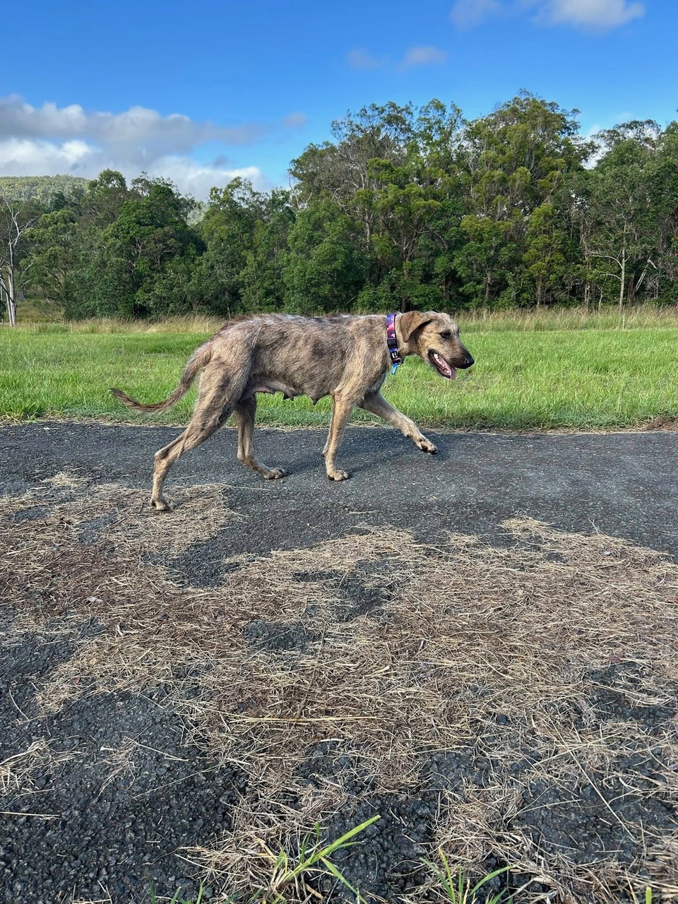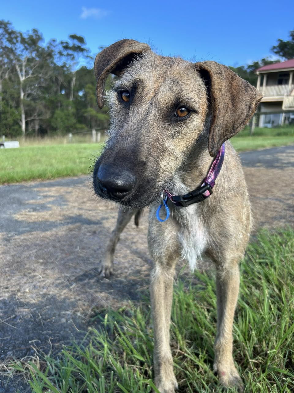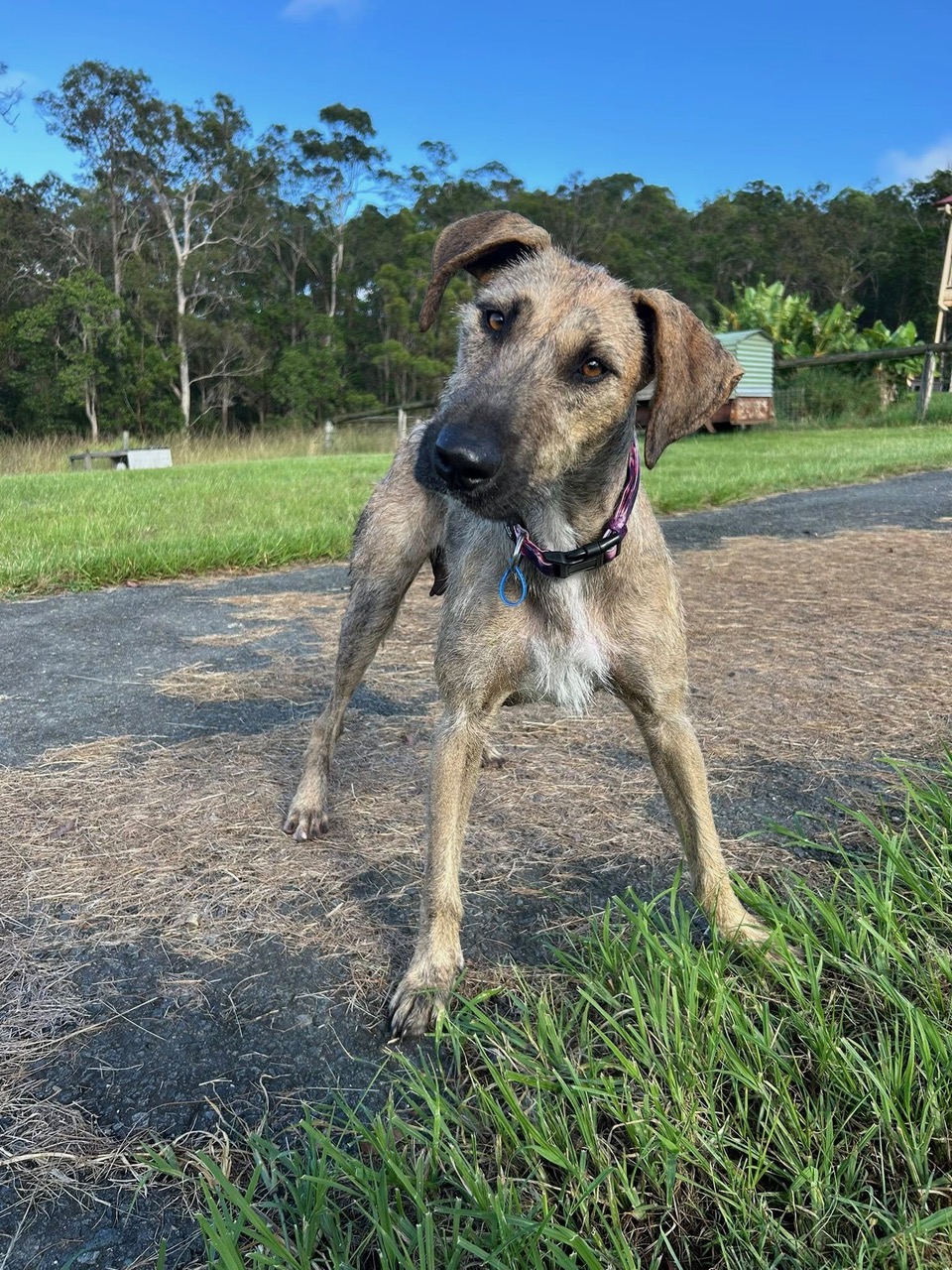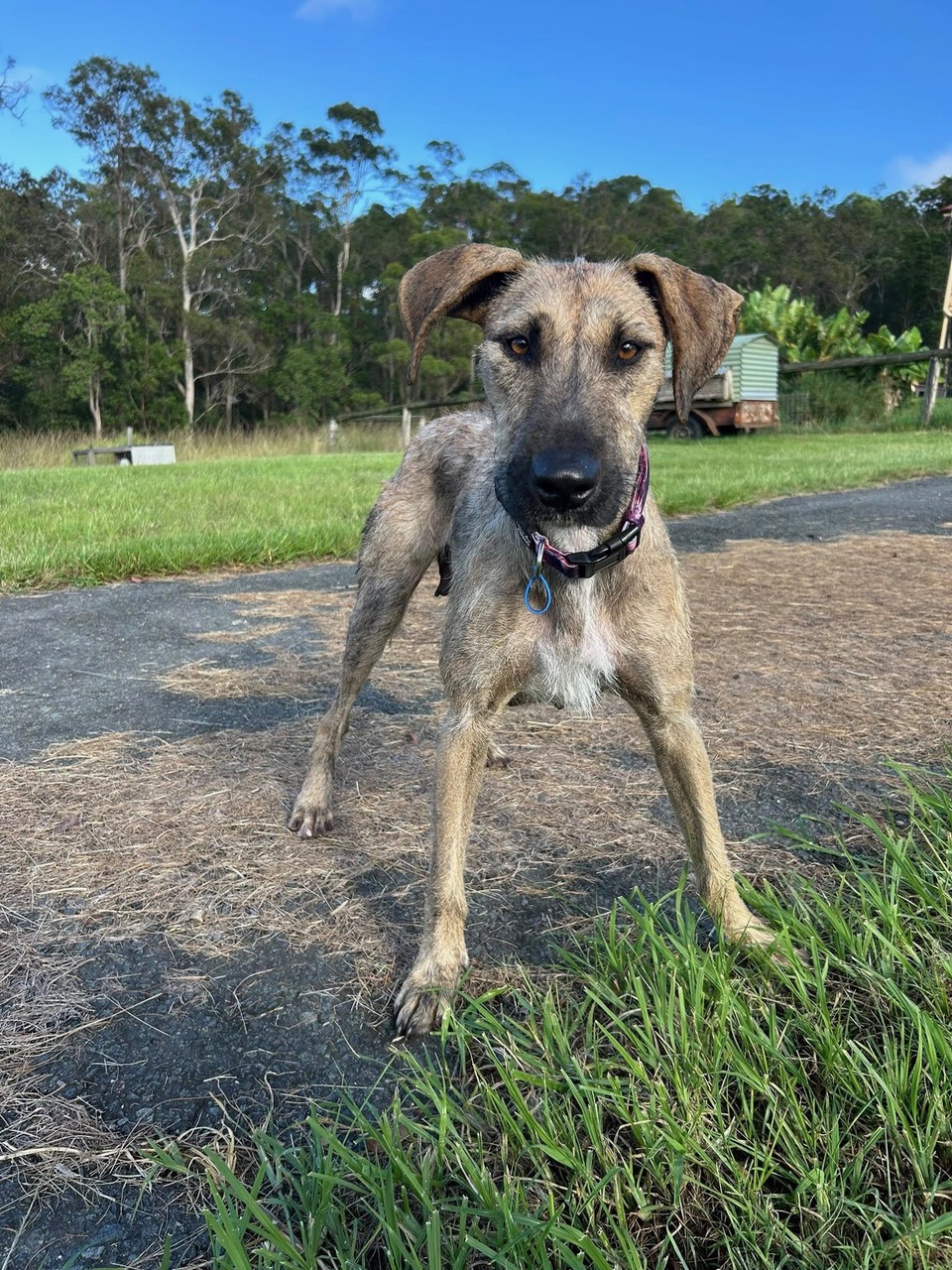 Esme would suit a home either with other dogs who can match her energy, or by herself. She will thrive with someone who can further her training and give her lots of love and attention.