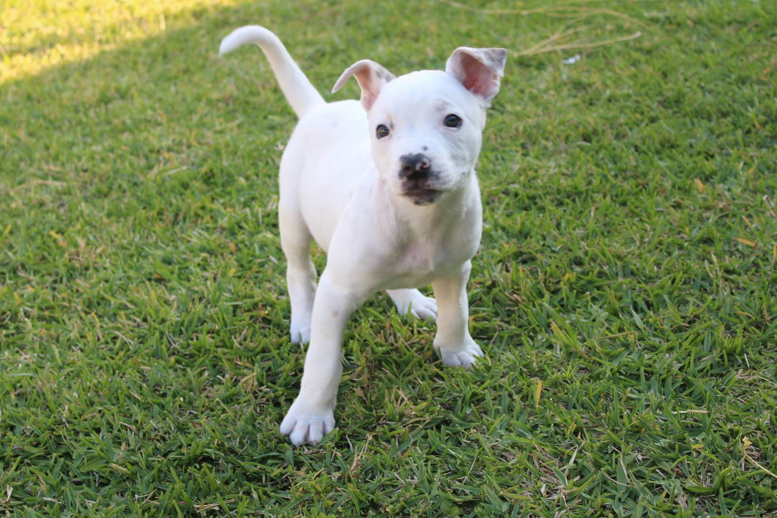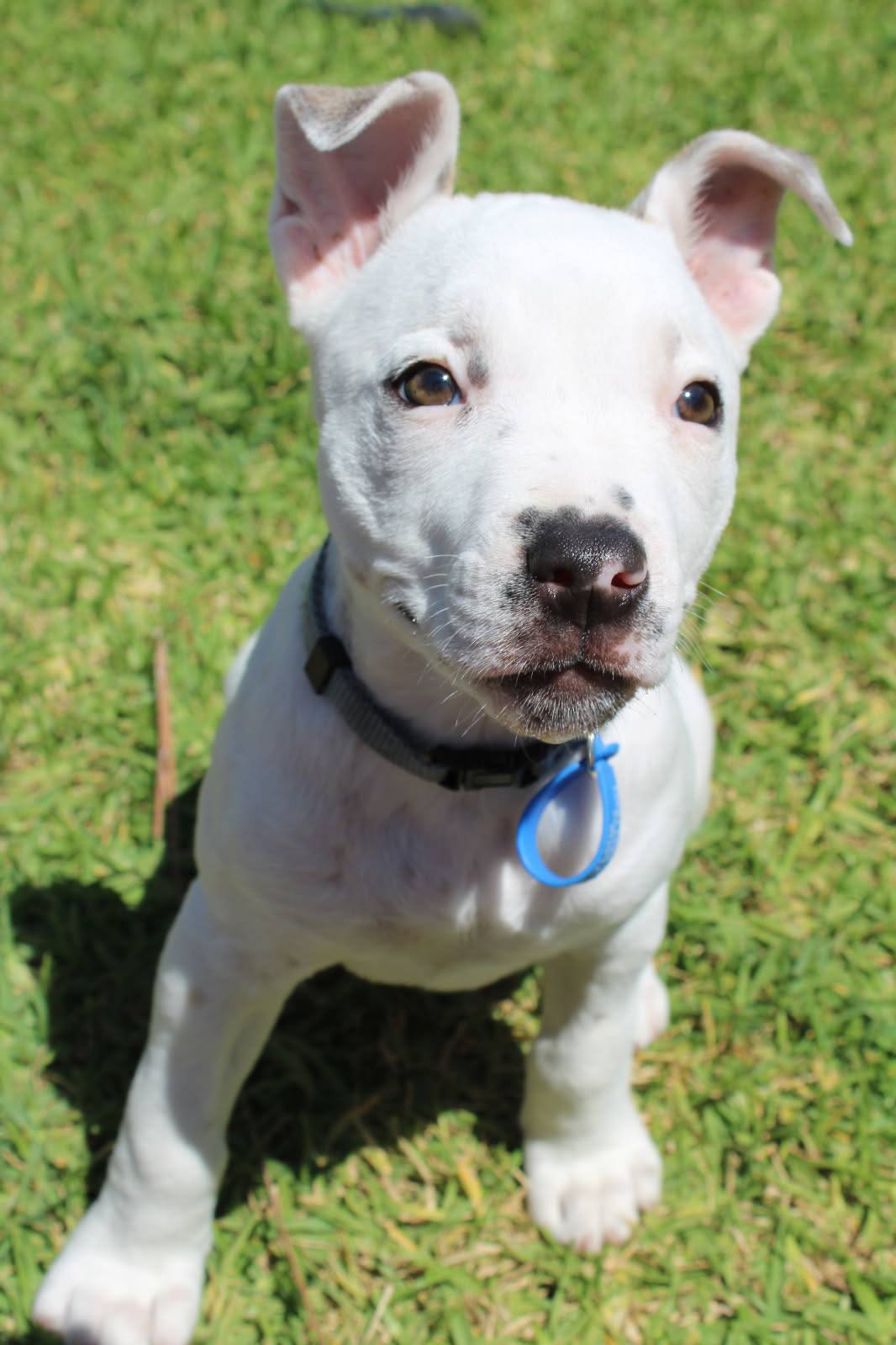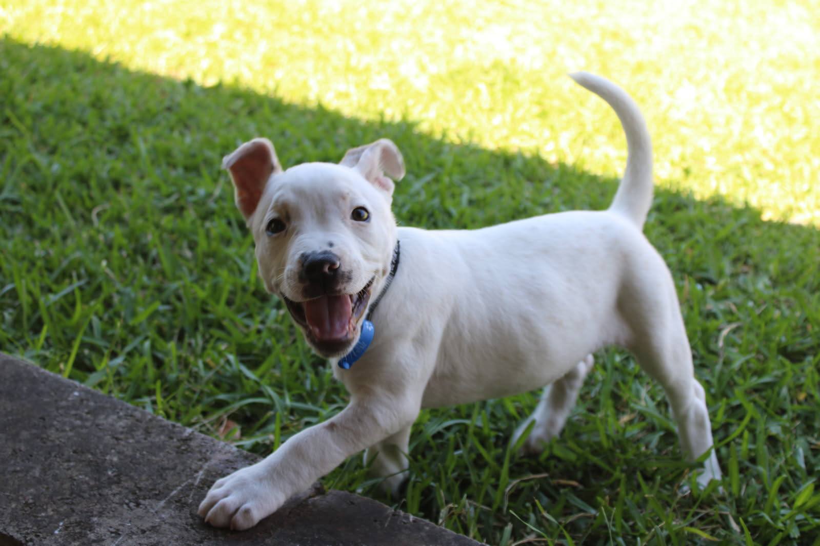 I know how to sit, and can wait patiently for my bowl when it's meal times. I'm learning to walk on a lead, and getting better everyday. My favourite thing to do is playing chasing games in the yard with my foster humans and foster brother, Frankie.