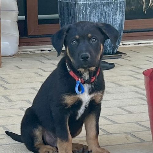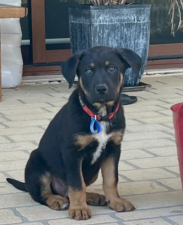 I’m learning my manners quickly, I sit nicely for dinner and pats, and I’m eager to come when called. My toilet training is almost perfect, and I absolutely love having visitors (especially children!) who will play and fuss over me.