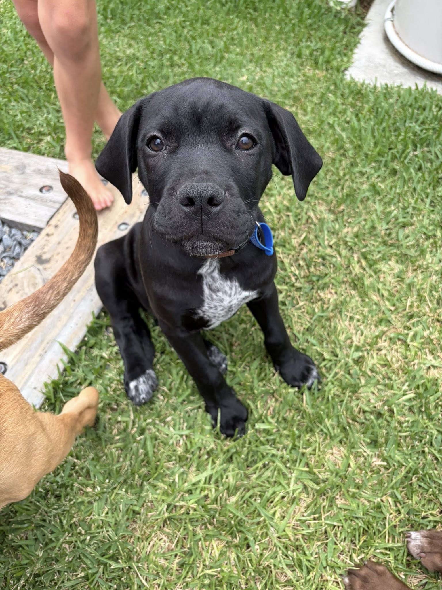 I have been trying to learn some good manners from my older foster brother. I sit before meals but haven’t quite mastered the wait though. I try to walk politely on the lead but with my energy I just want to run.
