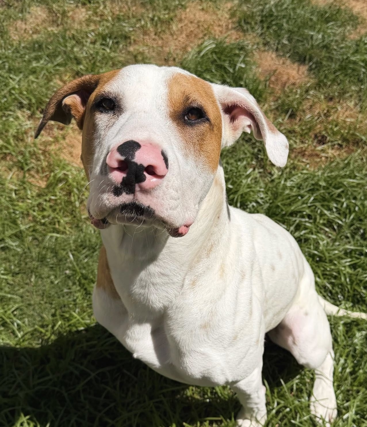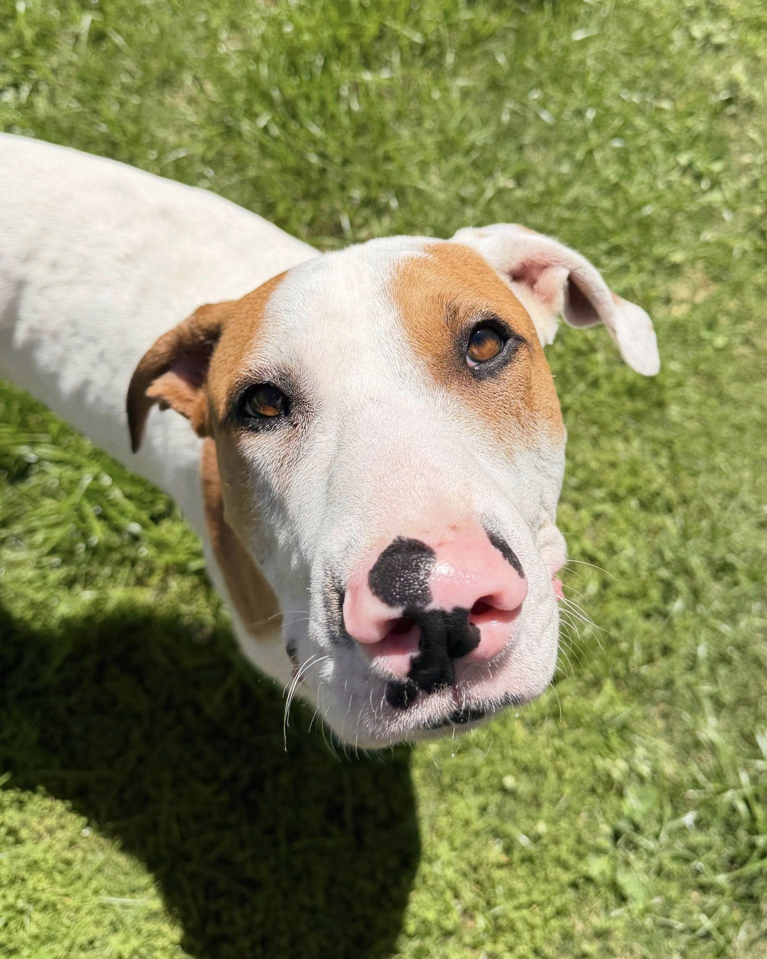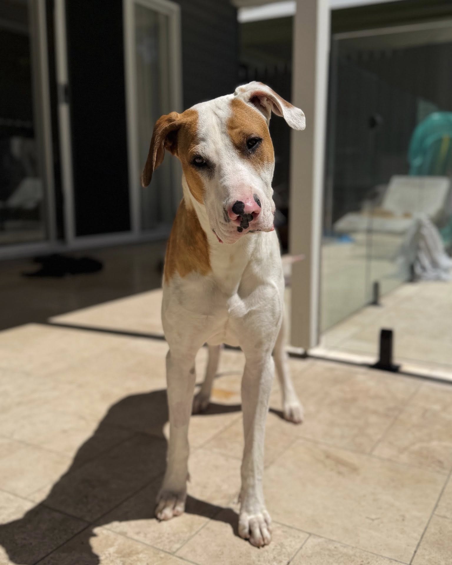He would suit a home with older children or adults, simply due to his size and lack of personal-space awareness. He’s great as an only dog, but can also live with other medium/large dogs who enjoy a playful companion.
