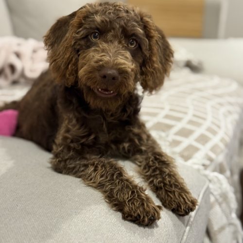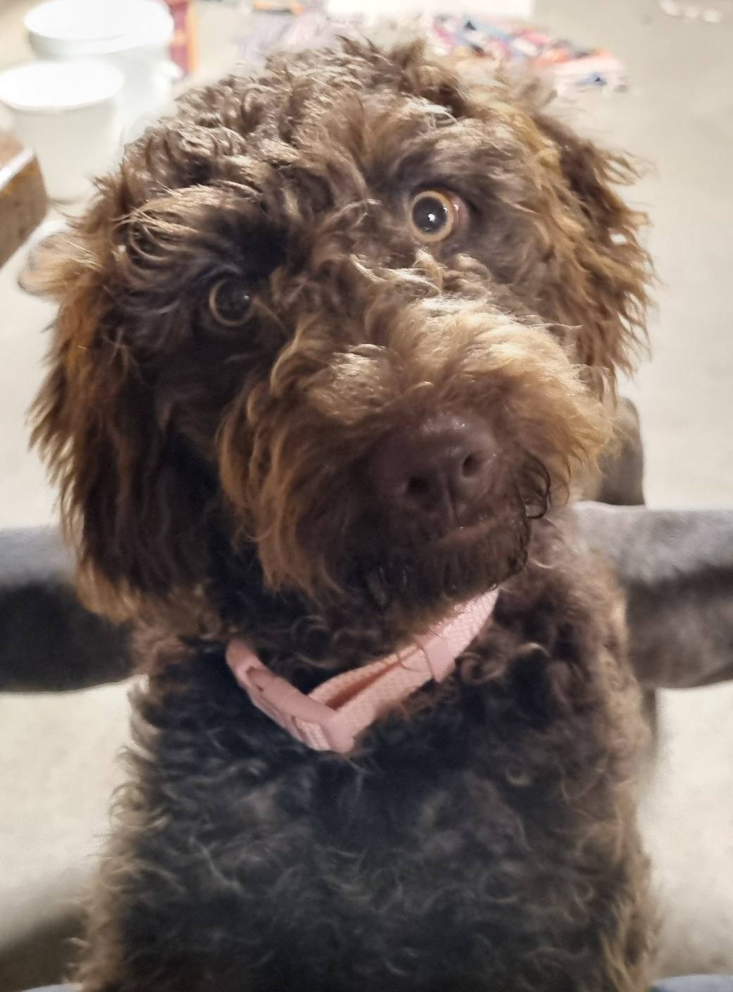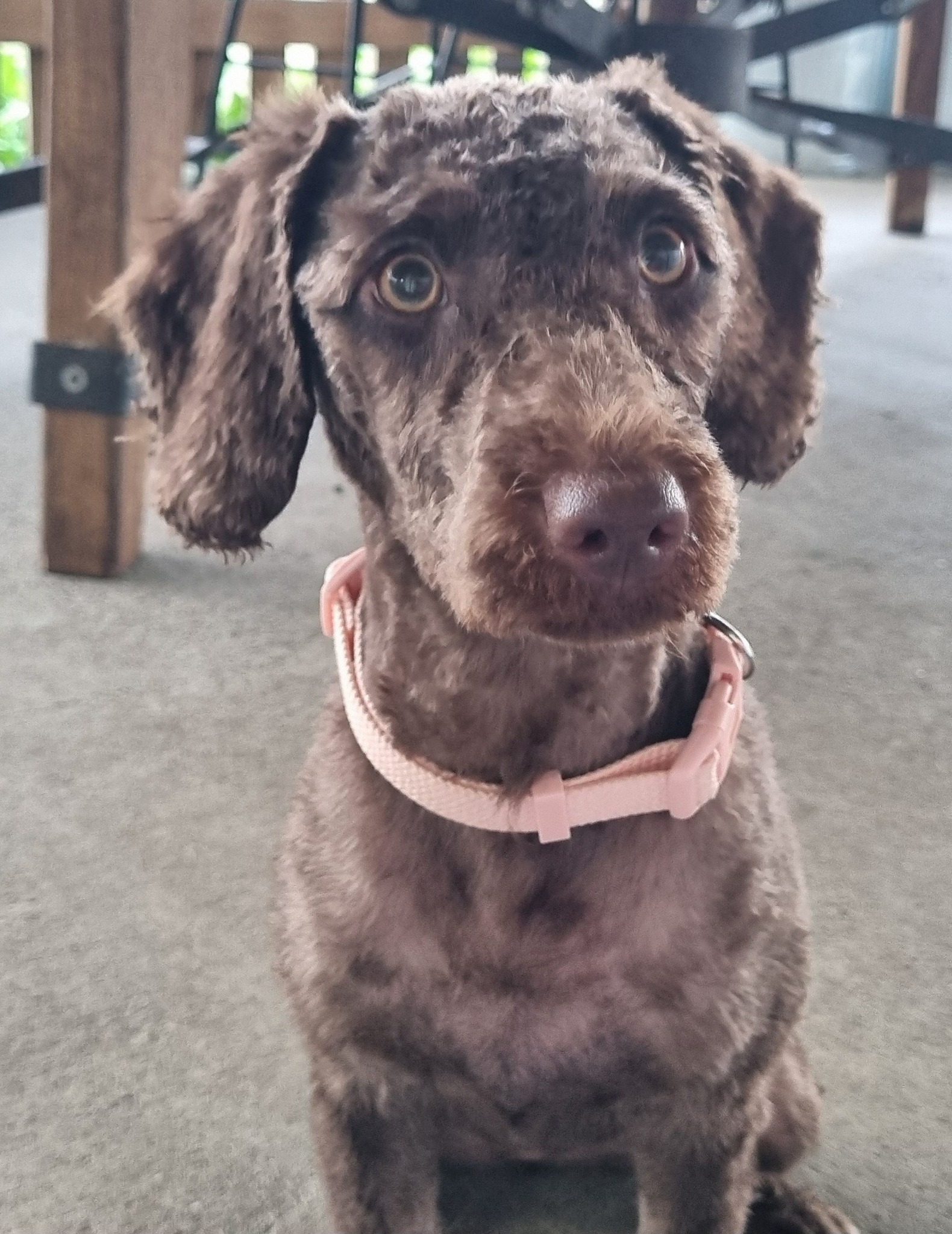 Her soft, low-shedding coat and big, soulful eyes make her irresistible — but it’s her sweet, goofy personality that truly wins hearts. Mable is perfect for families, couples, or anyone who wants a loyal best friend by their side.