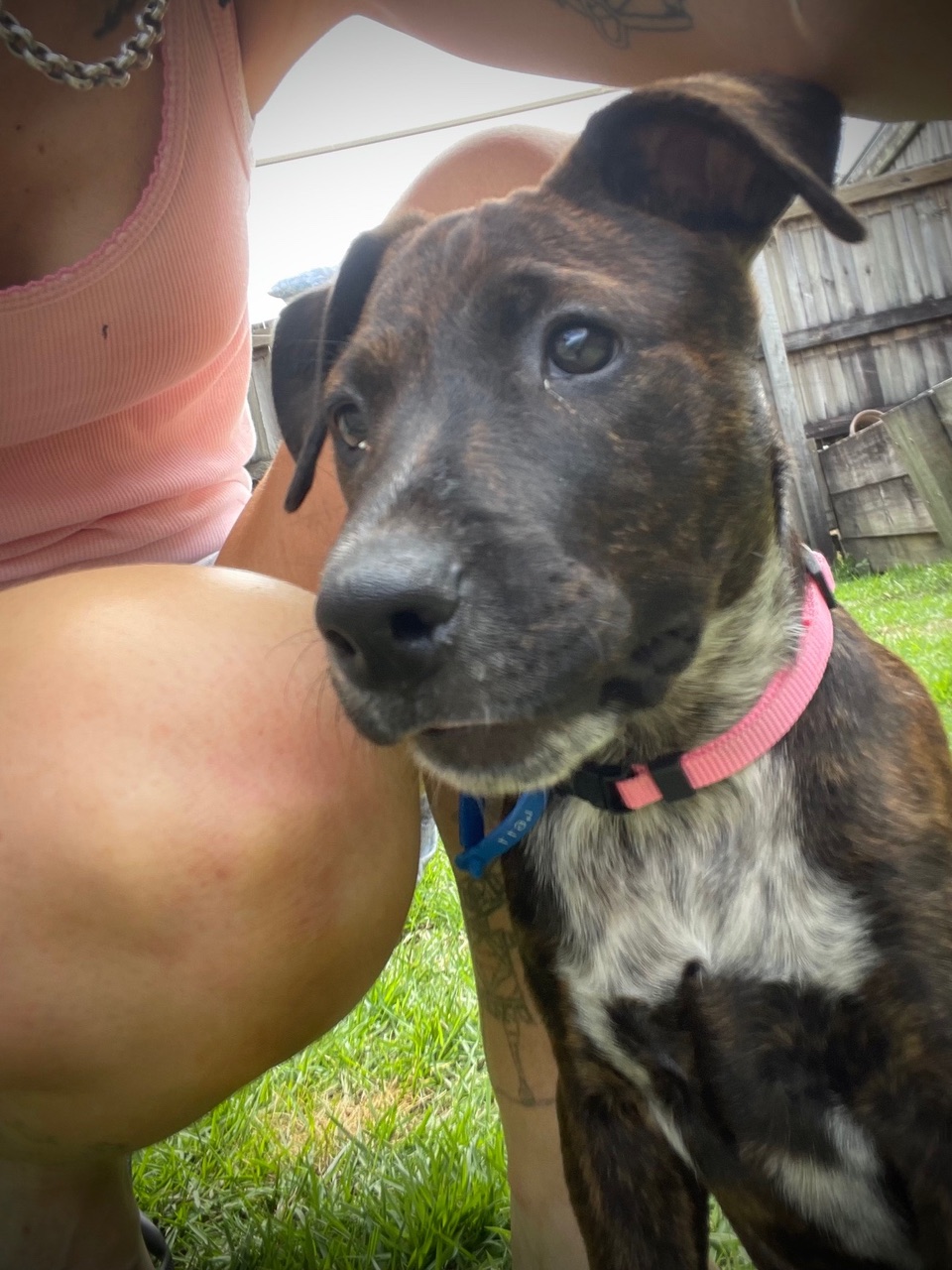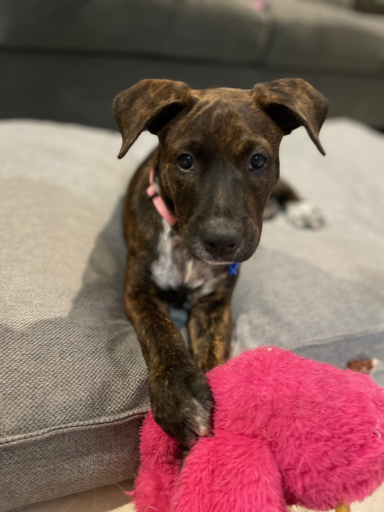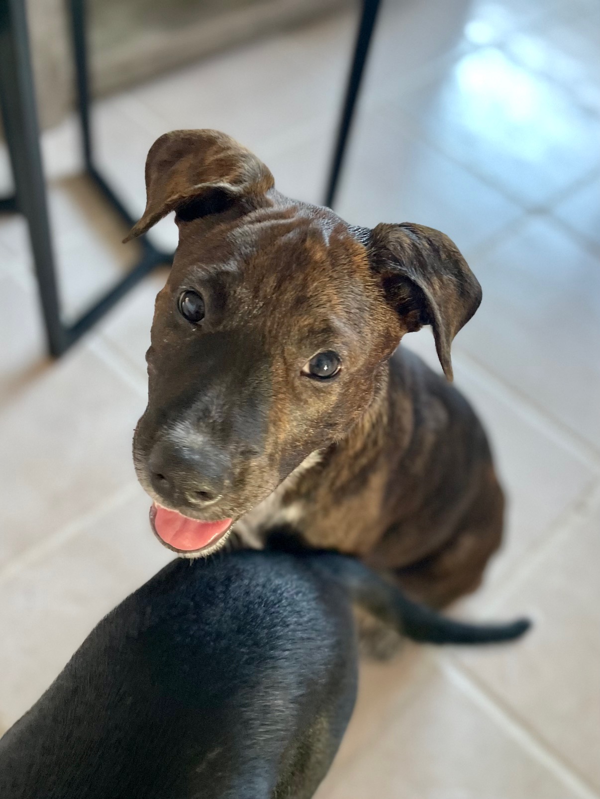 This little pup (like her sister) would do well in a home where there’s someone there more often then not but is okay being at home for longer periods when there’s another pup or dog there too. Children & adults who are gentle & patient with puppies & who understand their needs would be great matches for JADE also.