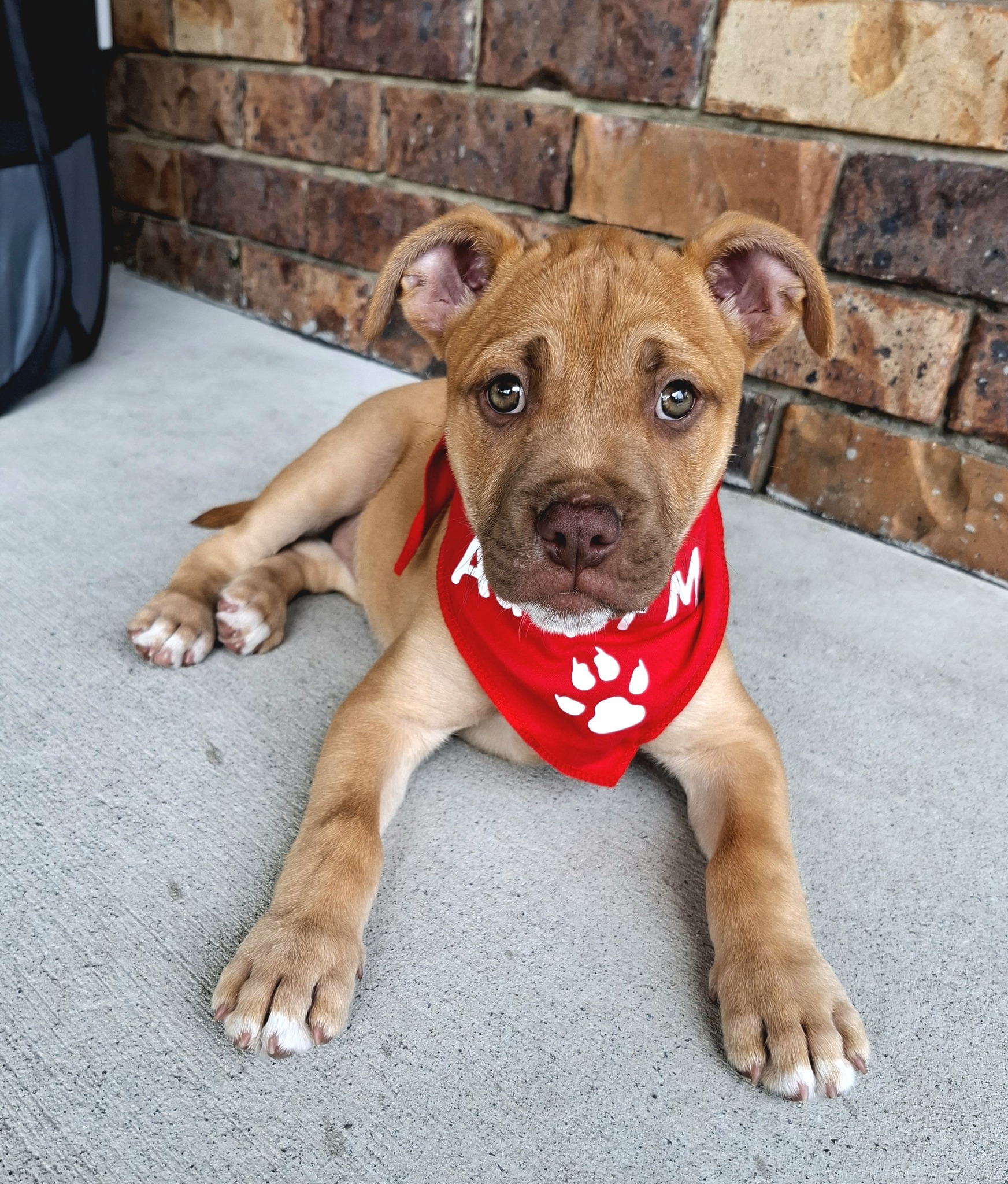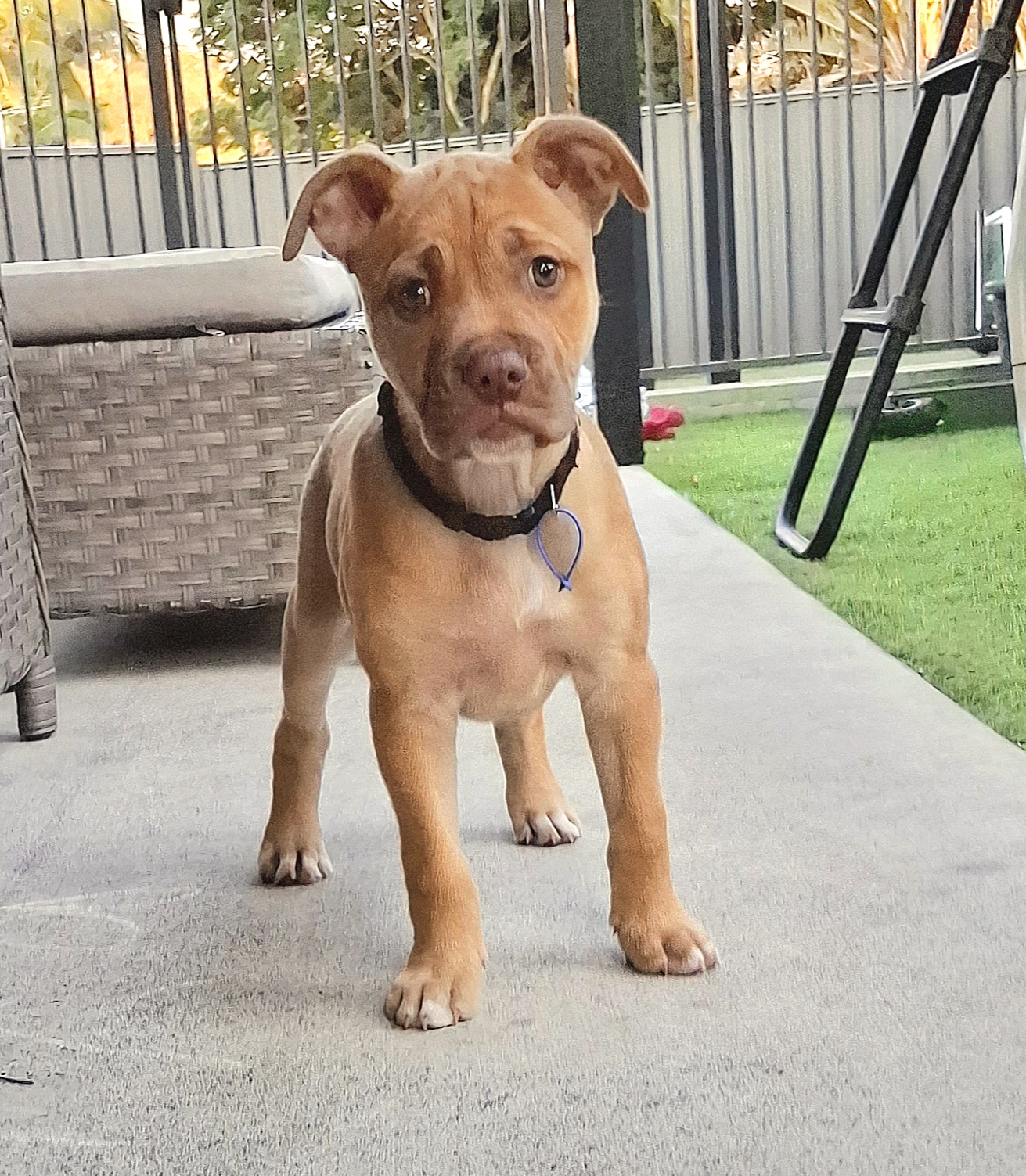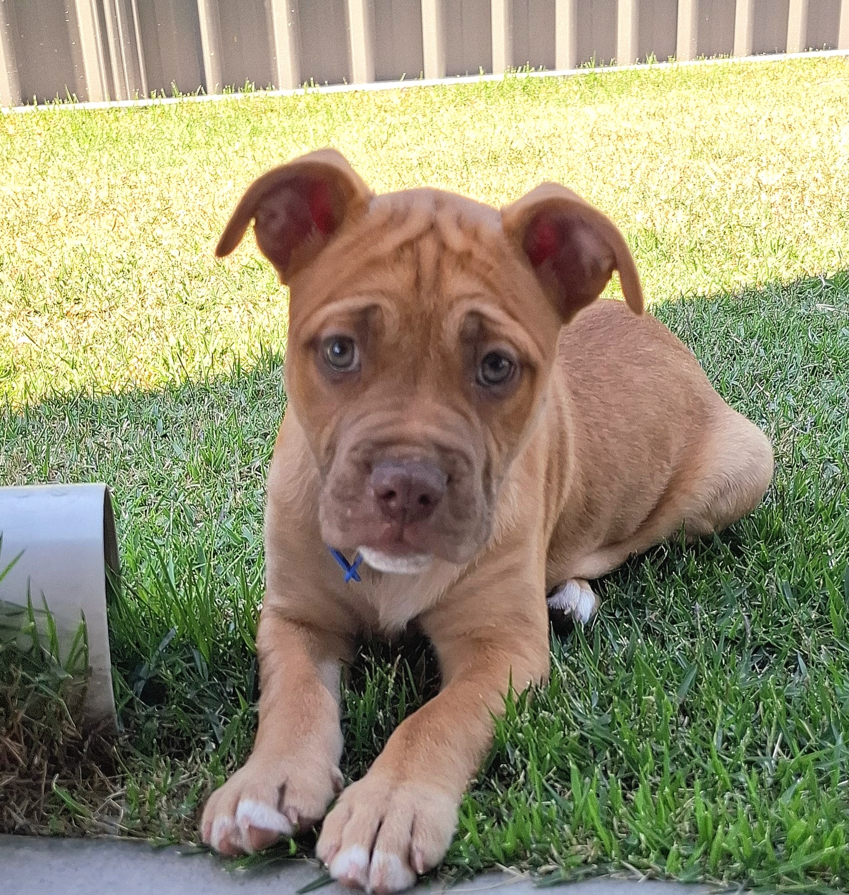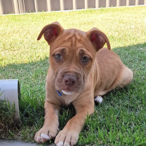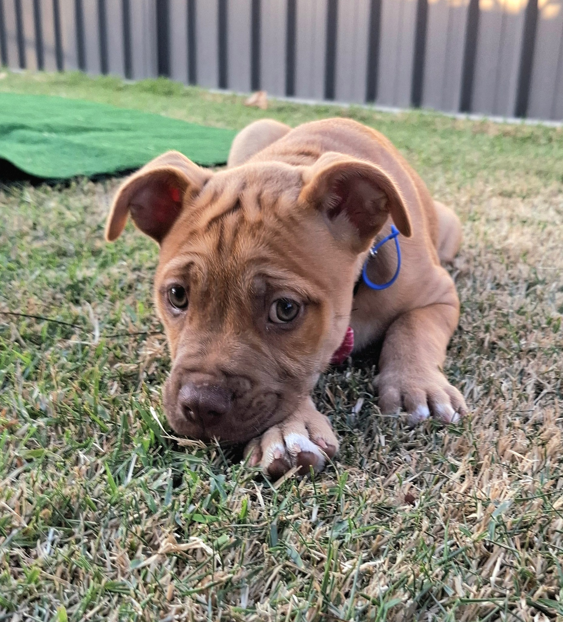 As a Mastiff x Staffy, she’ll grow into a medium-to-large dog and will need a family committed to her training, exercise, and socialisation. With the right guidance, Koko will blossom into a loyal, loving companion who’s always by your side.