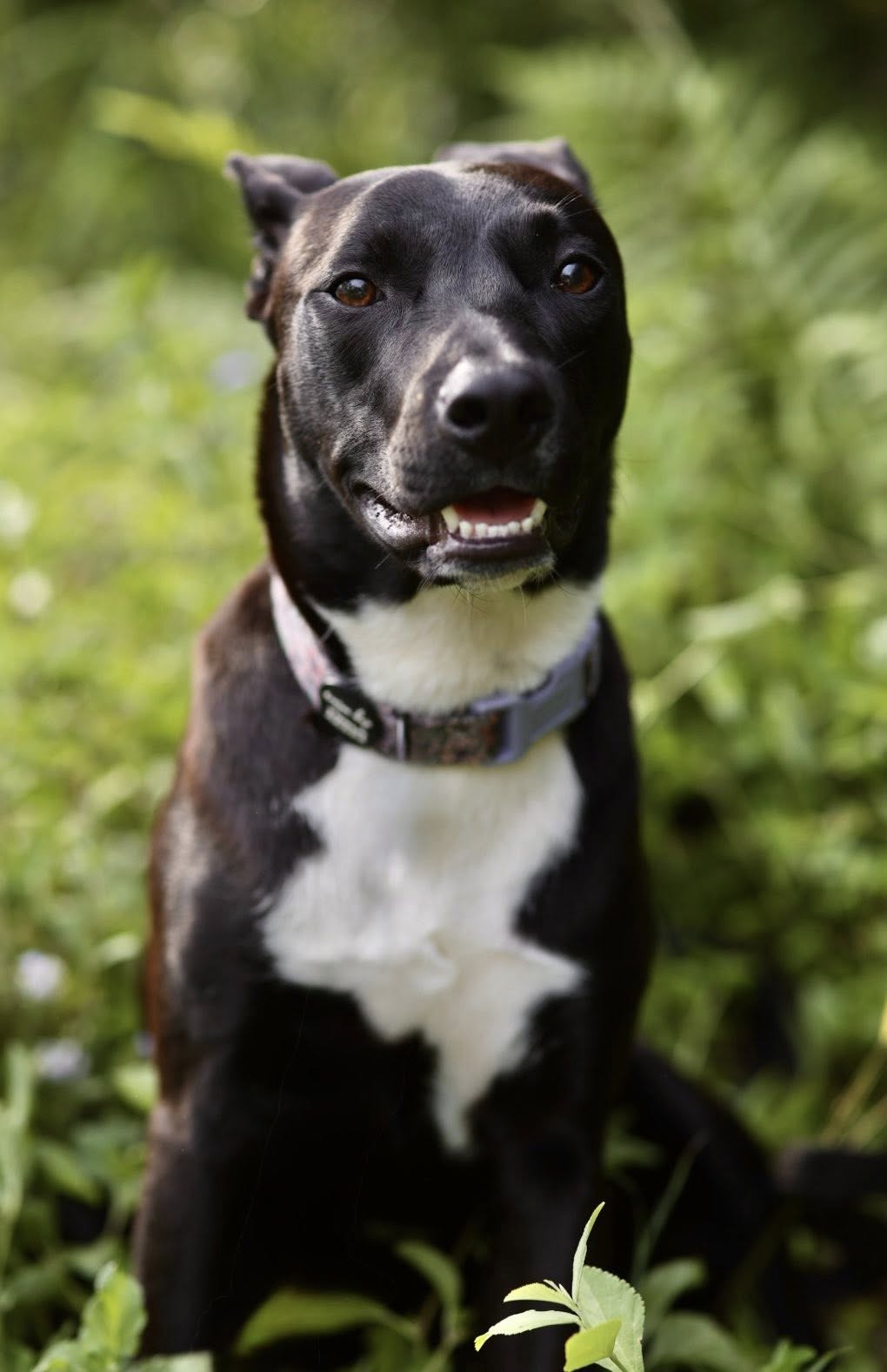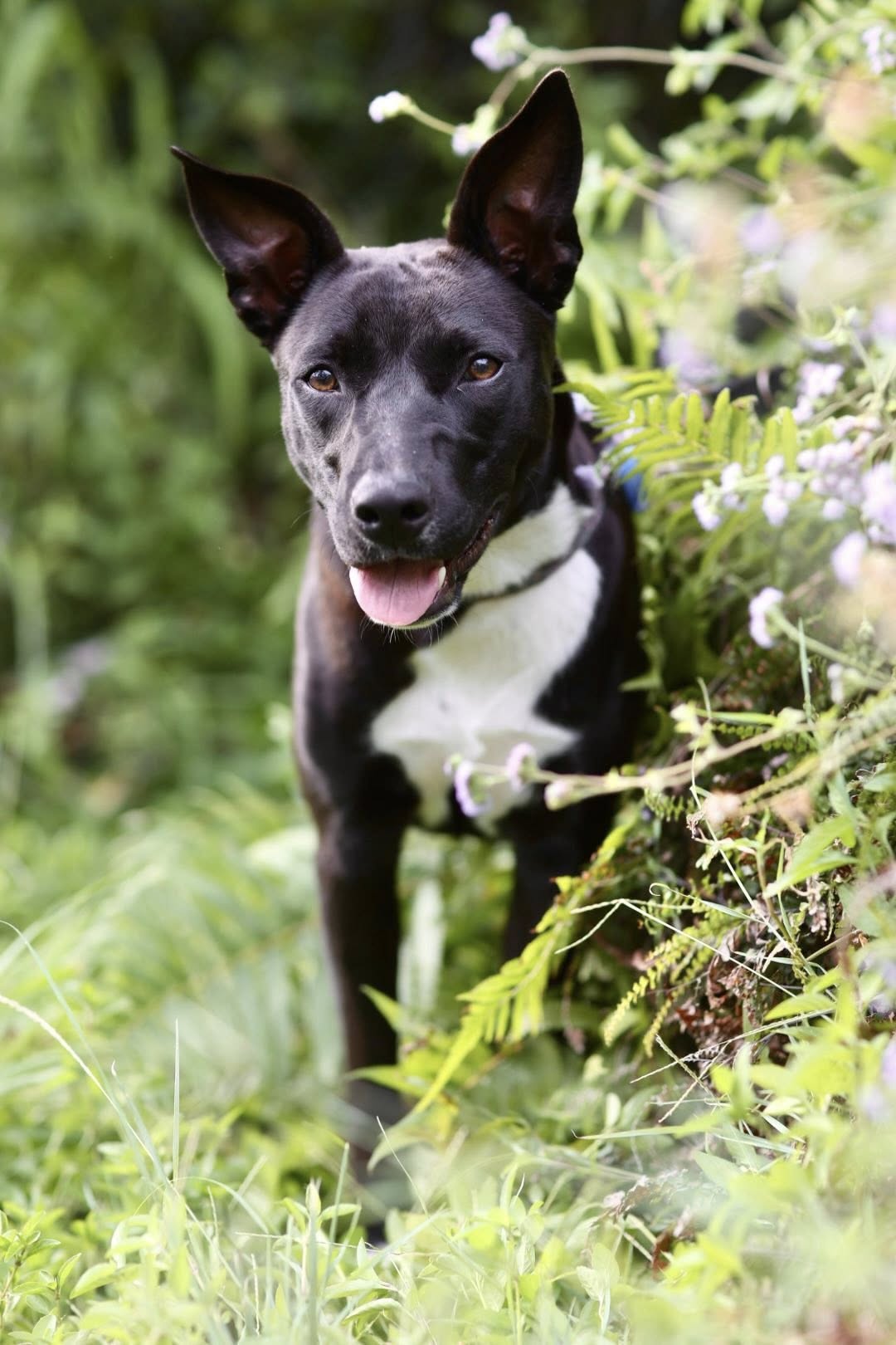 Meet Krumb — the black-and-white beauty with sock-boot paws, a cheeky Staffy face, and tall Kelpie ears that turn into “airplane mode” the moment you talk to her. One word and she melts into a goofy, sweet, wiggly girl with eyes full of love.