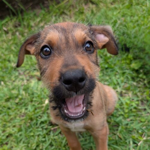 Meet Leaf, the sweetest, scruffy boy you'll ever meet! This laid-back pup is all about good vibes and cuddles, making him the perfect companion for any home.