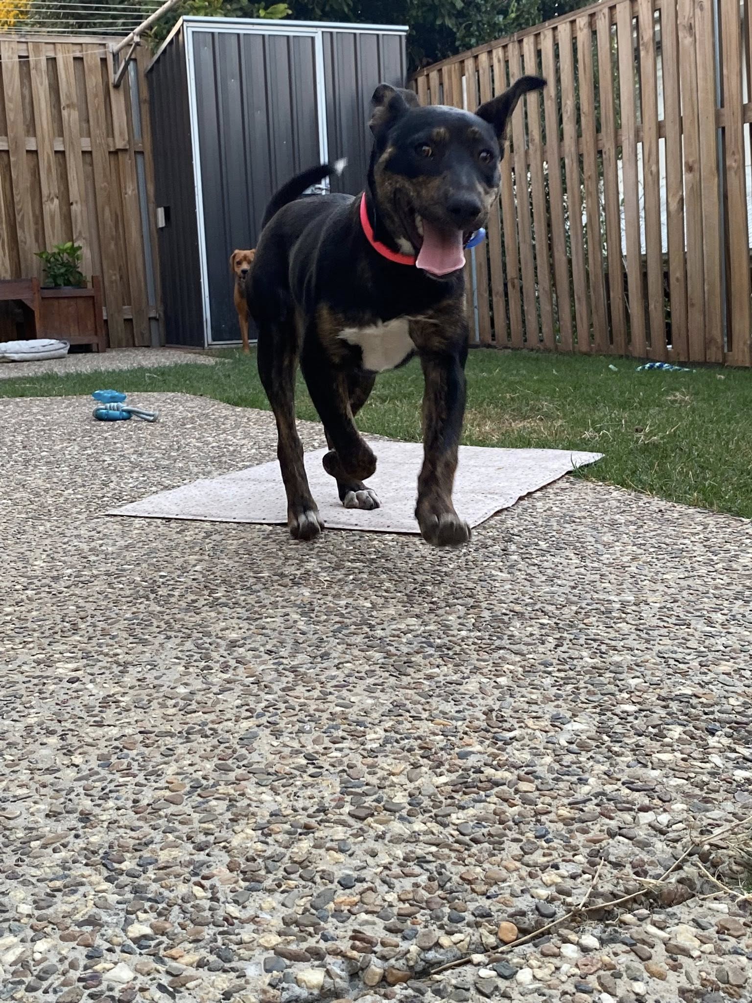 She is currently toilet and crate training, and is learning quickly with routine. Lottie is great with other dogs and would love a friend to play with.