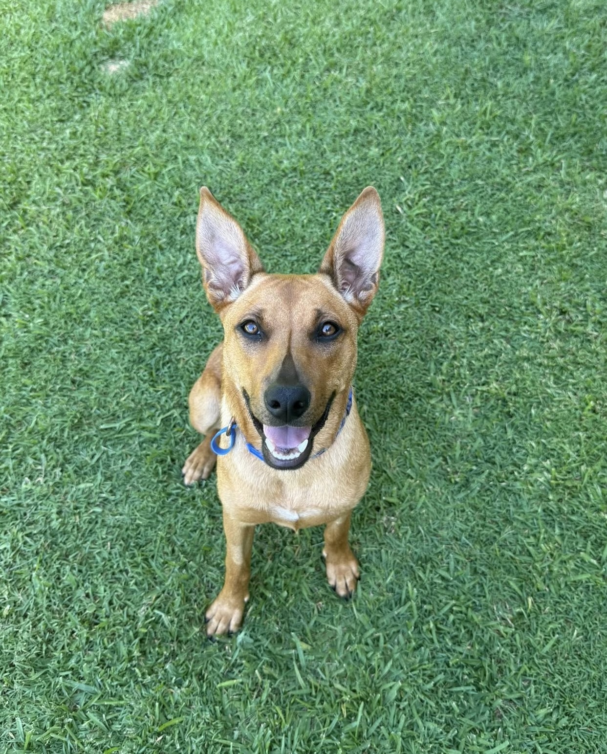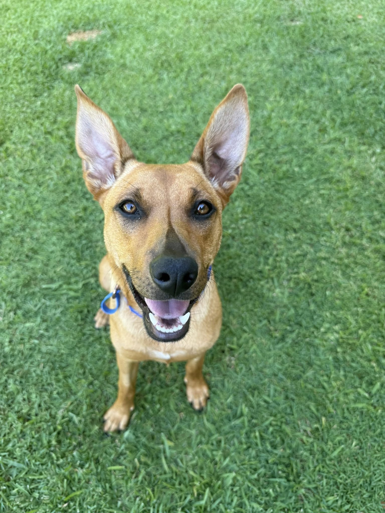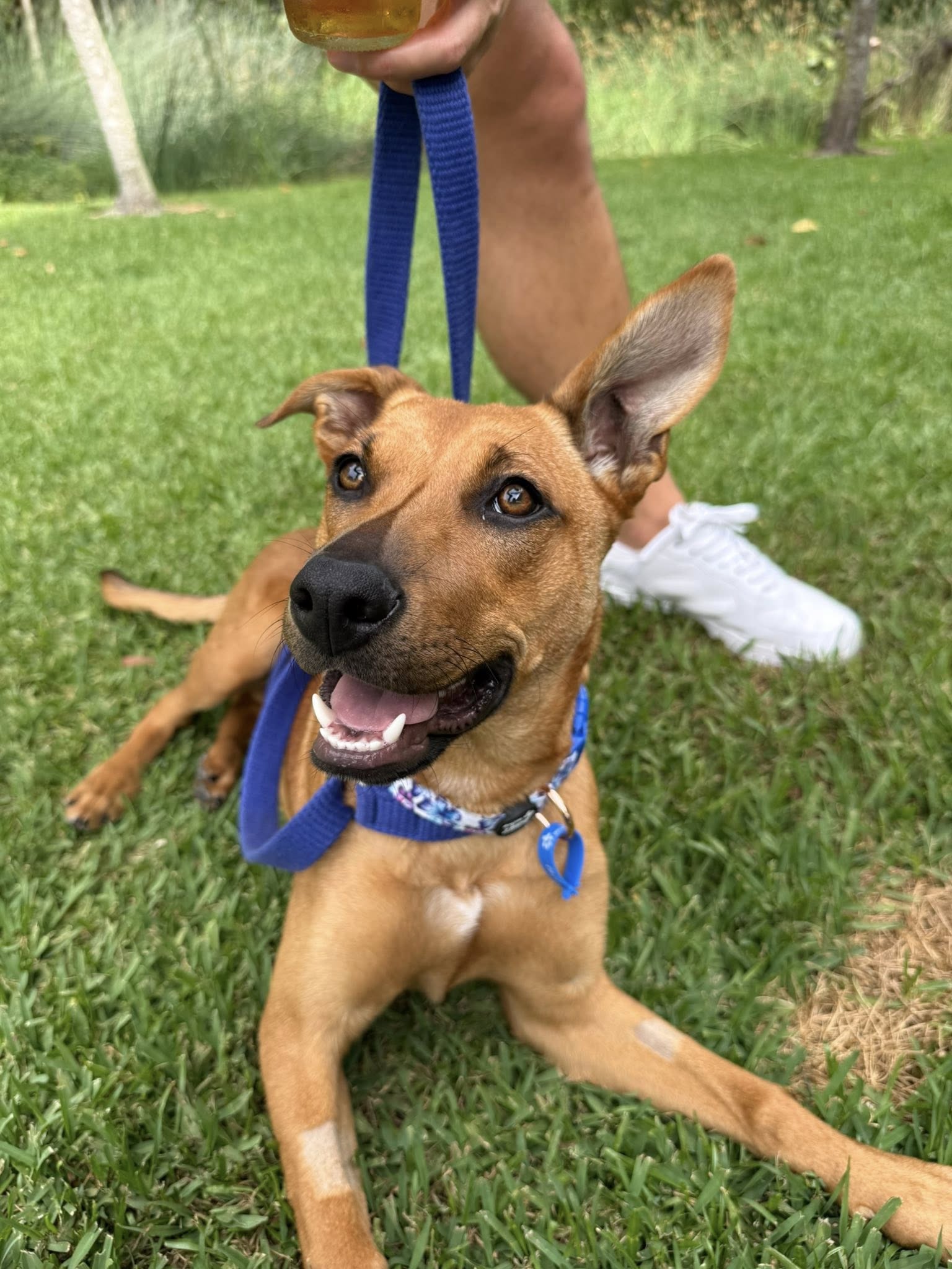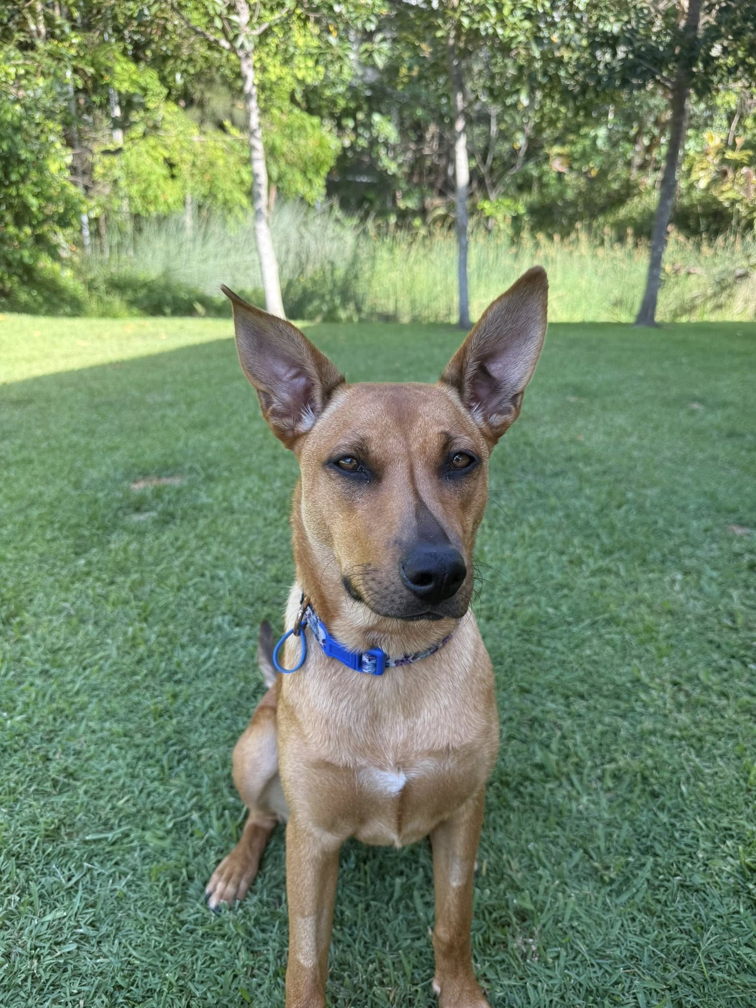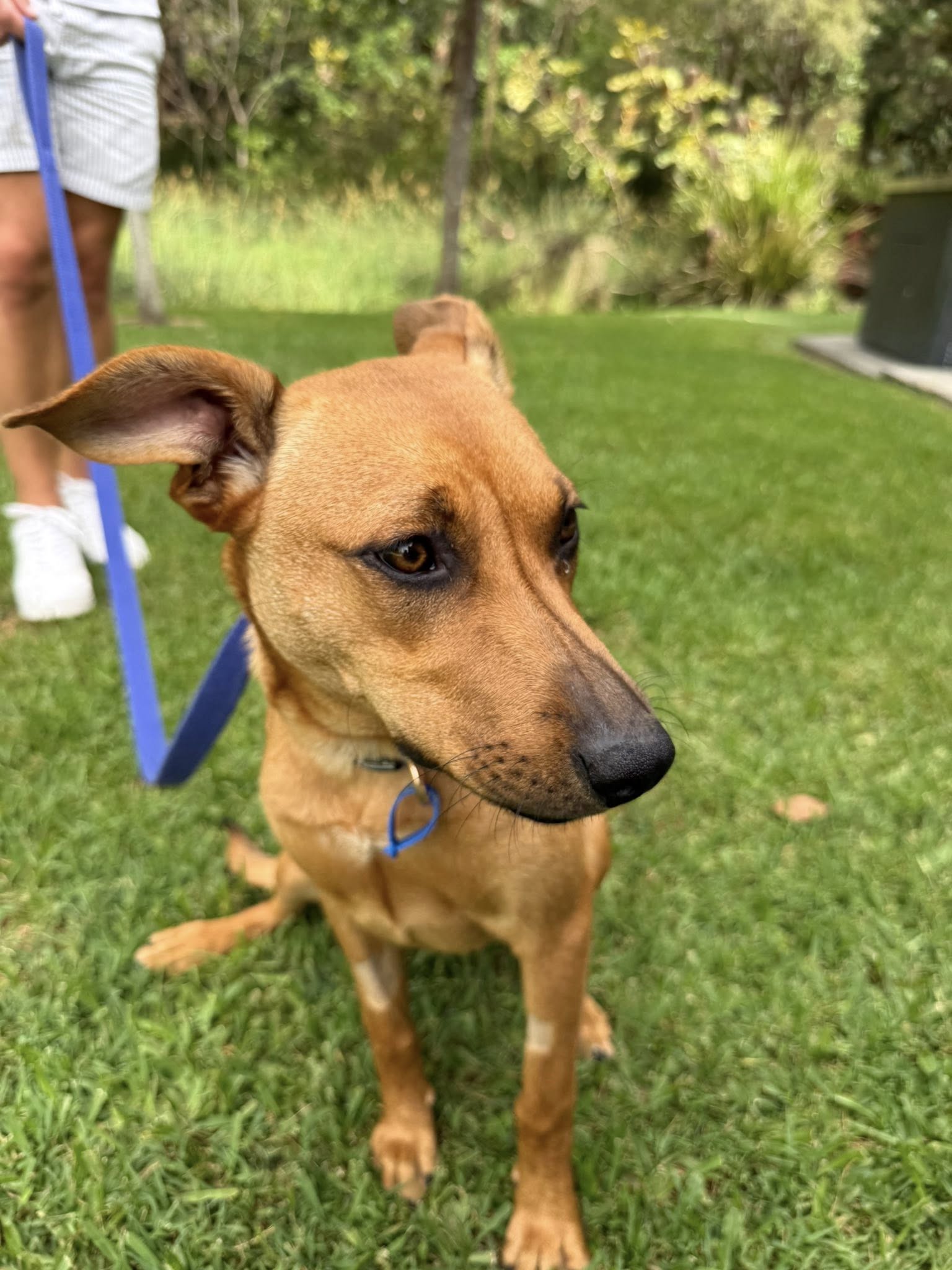 She’s very food-motivated, which makes training fun and rewarding. She’s gradually learning her manners and obedience, but as a curious puppy she’ll need someone with a bit of patience to guide her. She is mostly toilet trained and will usually let you know when she needs to go out.