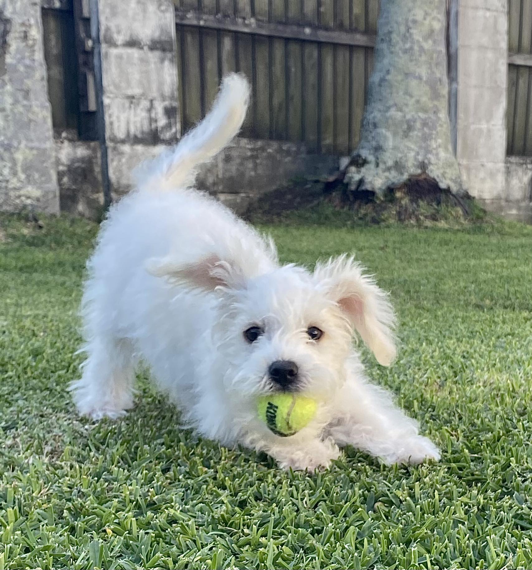Still a puppy, Marley enjoys playing with his foster pup friends, tussling with his teddys, and chasing his ball. He loves when his foster family join in his games and plays with him. Marley doesn’t ‘demand’ attention, but you can see his joy whenever he receives it. He also loves treats, and is very motivated to learn so that he can get more!