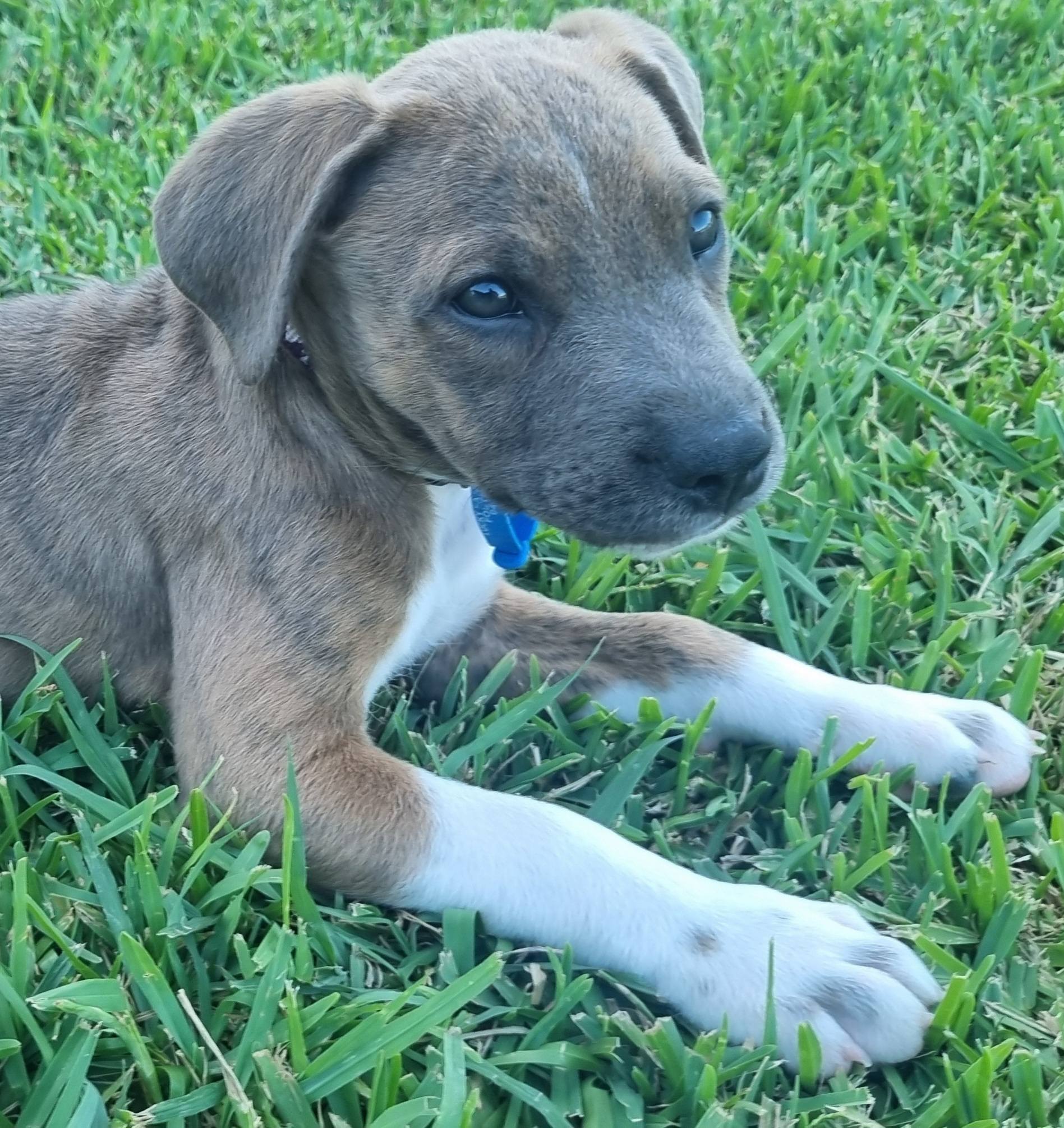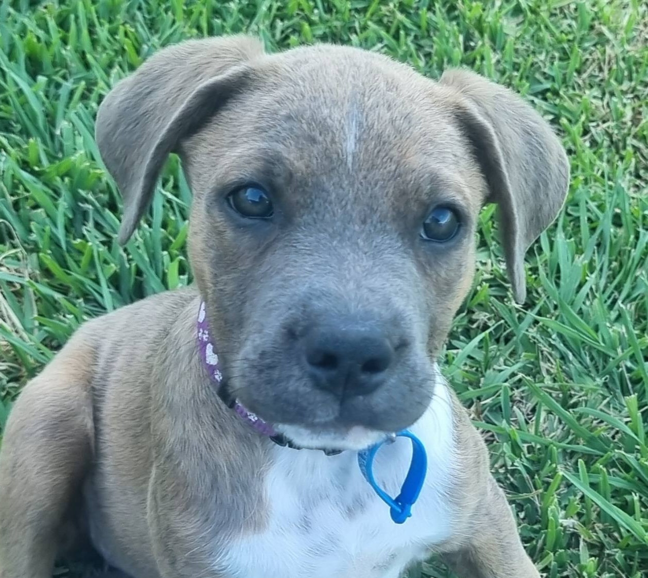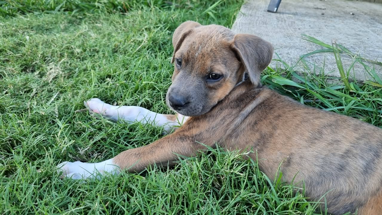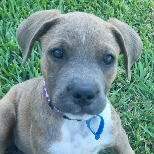 Her stunning brindle coat makes her even more special, and her confident, curious personality means she’ll fit beautifully into a home that can give her love, structure, and lots of playtime.