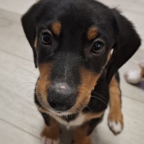 Mushu is a lovable, cuddly, cheeky boy who is as cute as a button. Snacks are his favourite pastime along with wrestling his brother and sister. He gets on well with other dogs often starting a game.