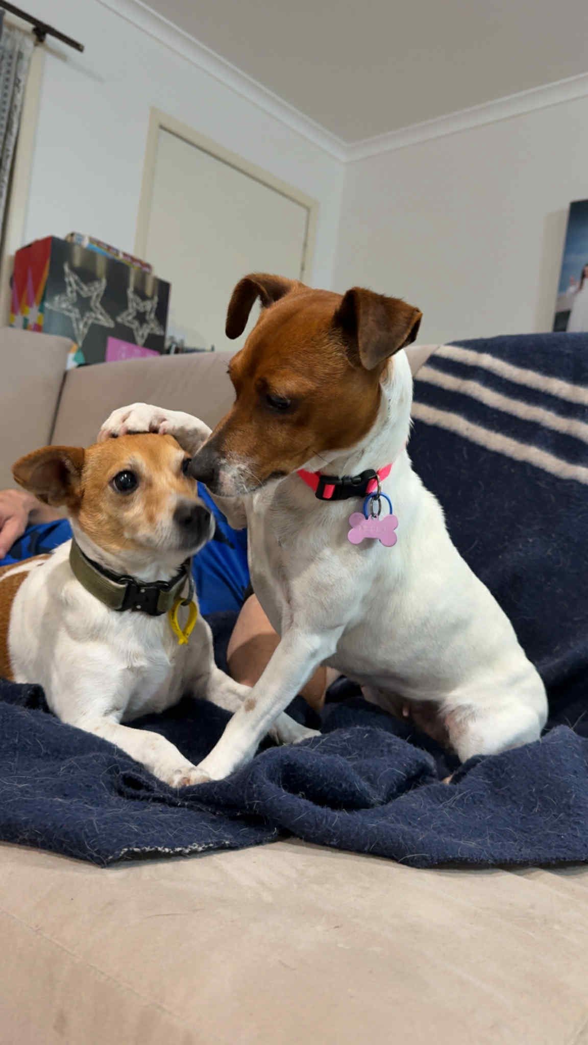 She takes a little bit of time to warm up to other dogs and will let them know if they are getting too close but soon loves them and gives them pats on the head and cuddles.