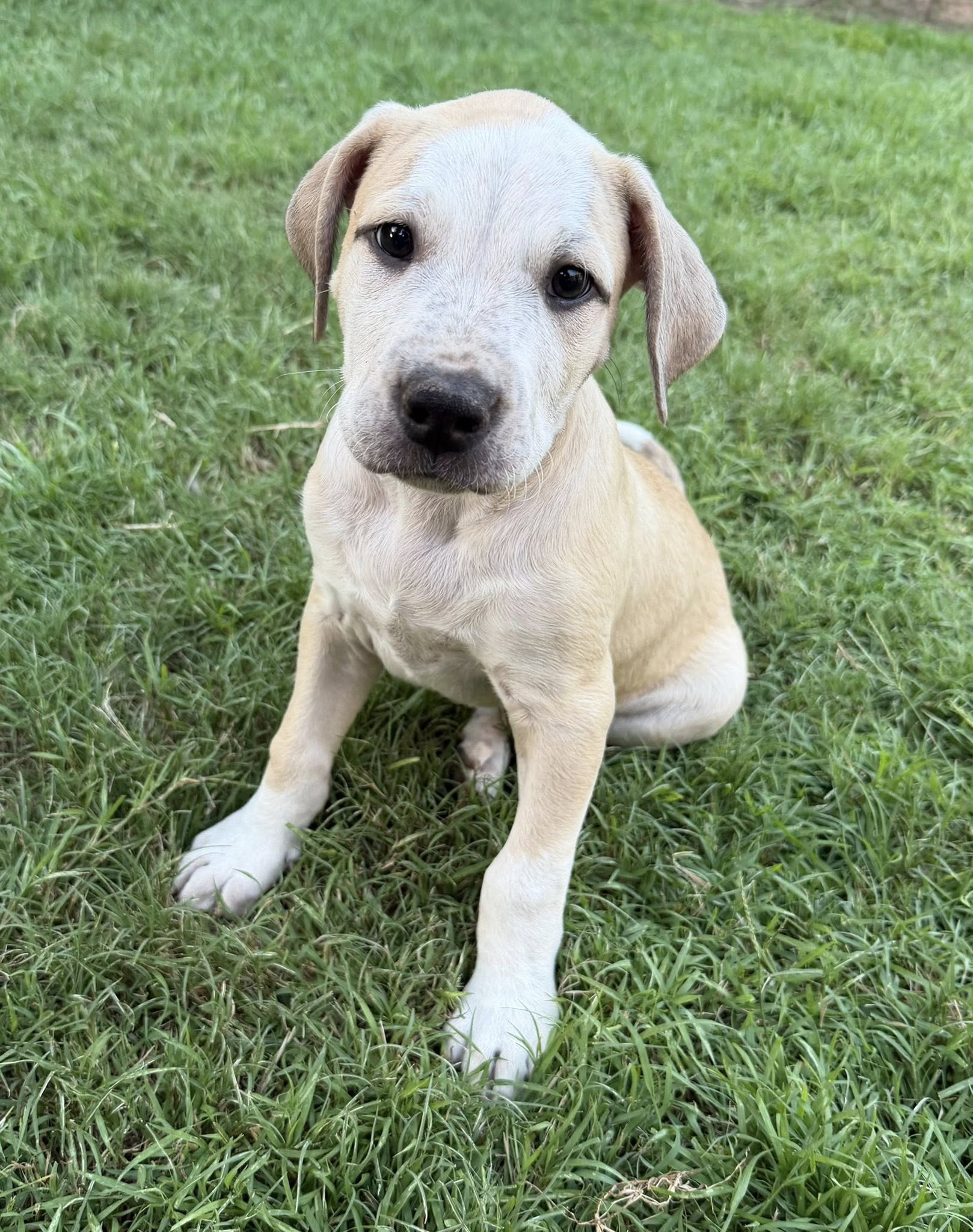 During the day I split my time between inside and outside. I love exploring the yard, playing, and entertaining myself. I currently live with two other pups and three big resident dogs, and I get along great with everyone. Like most puppies, I enjoy toys and a good wrestle with my siblings along with a big love for food.