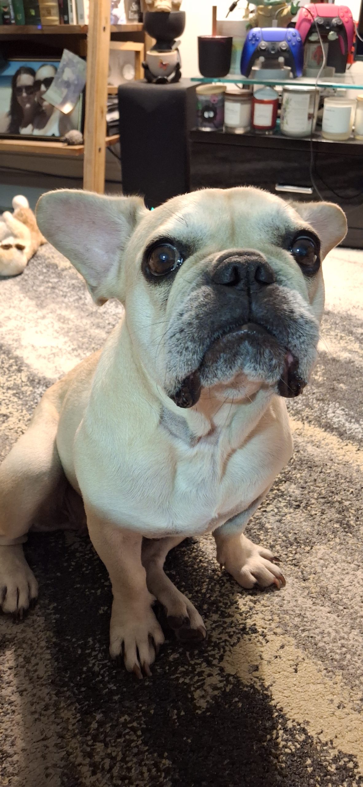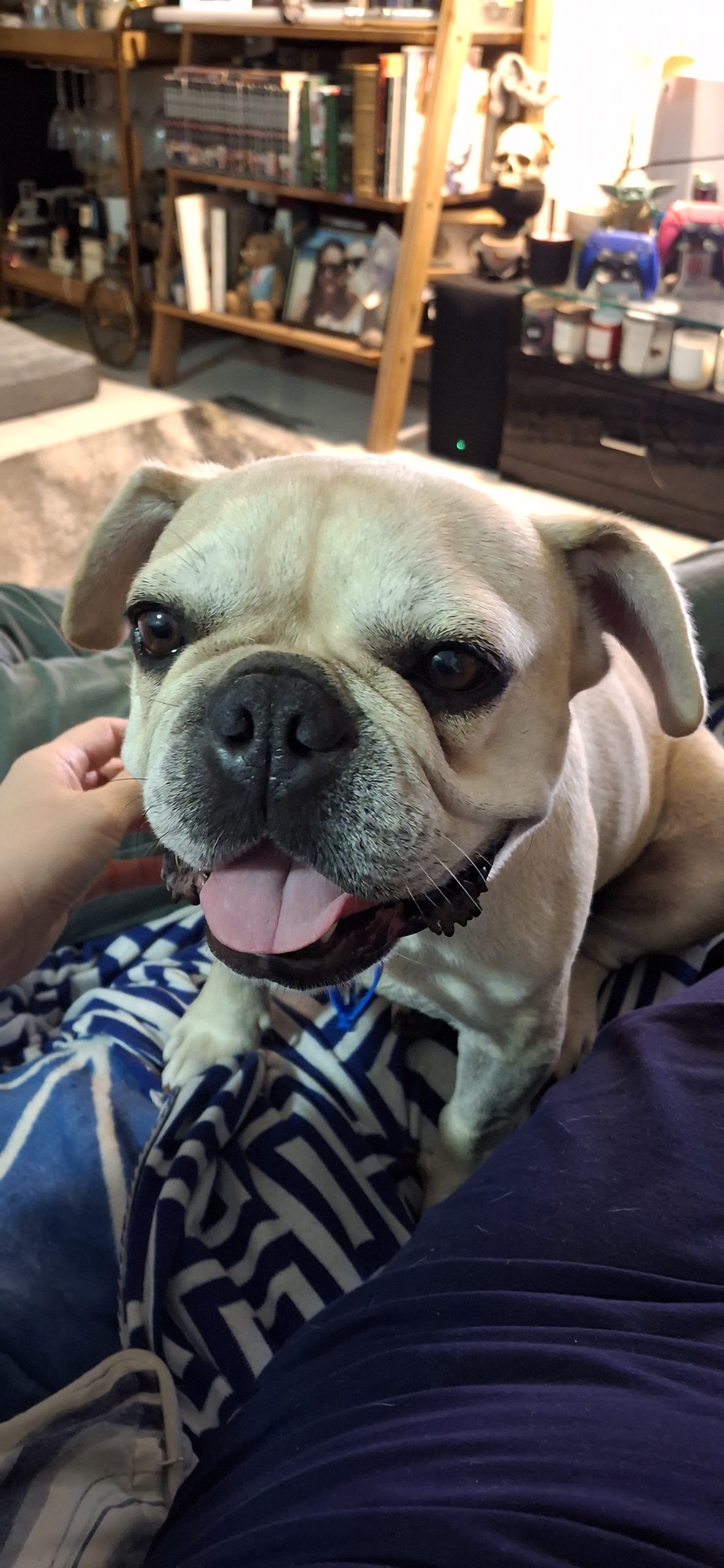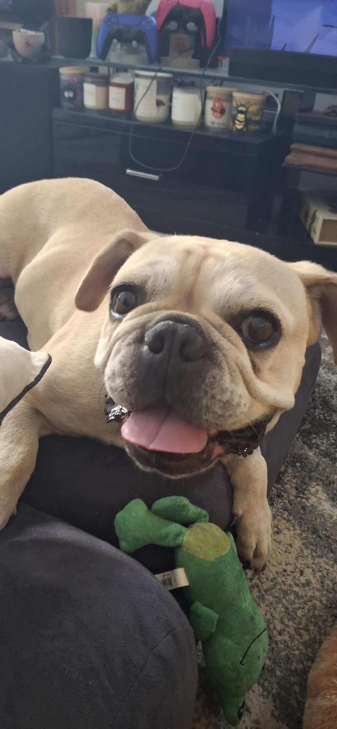 My favourite activities include resting my body weight on you for a very close cuddle and possibly unsolicited kisses. I also love playing fetch with my squeaky frog toy and foster parents.
