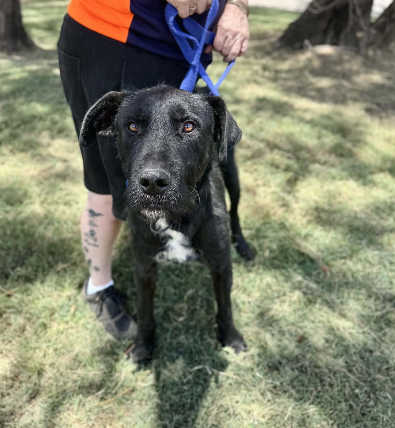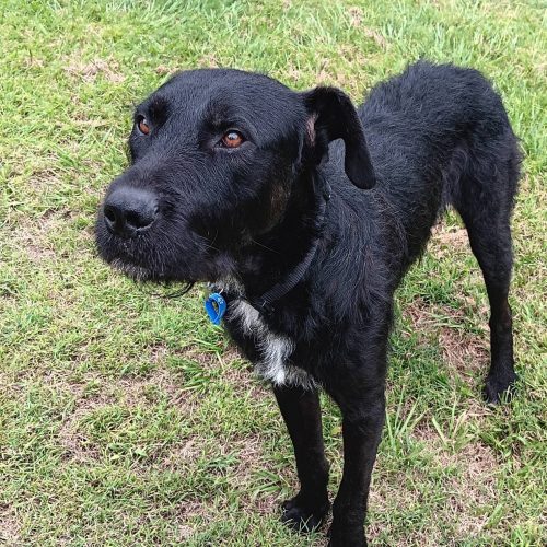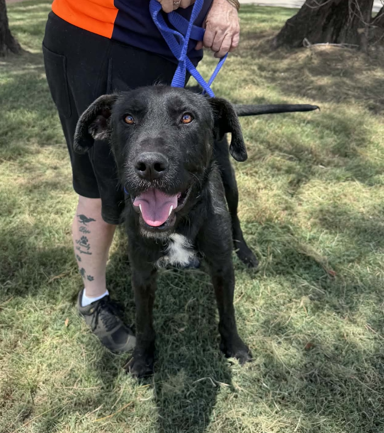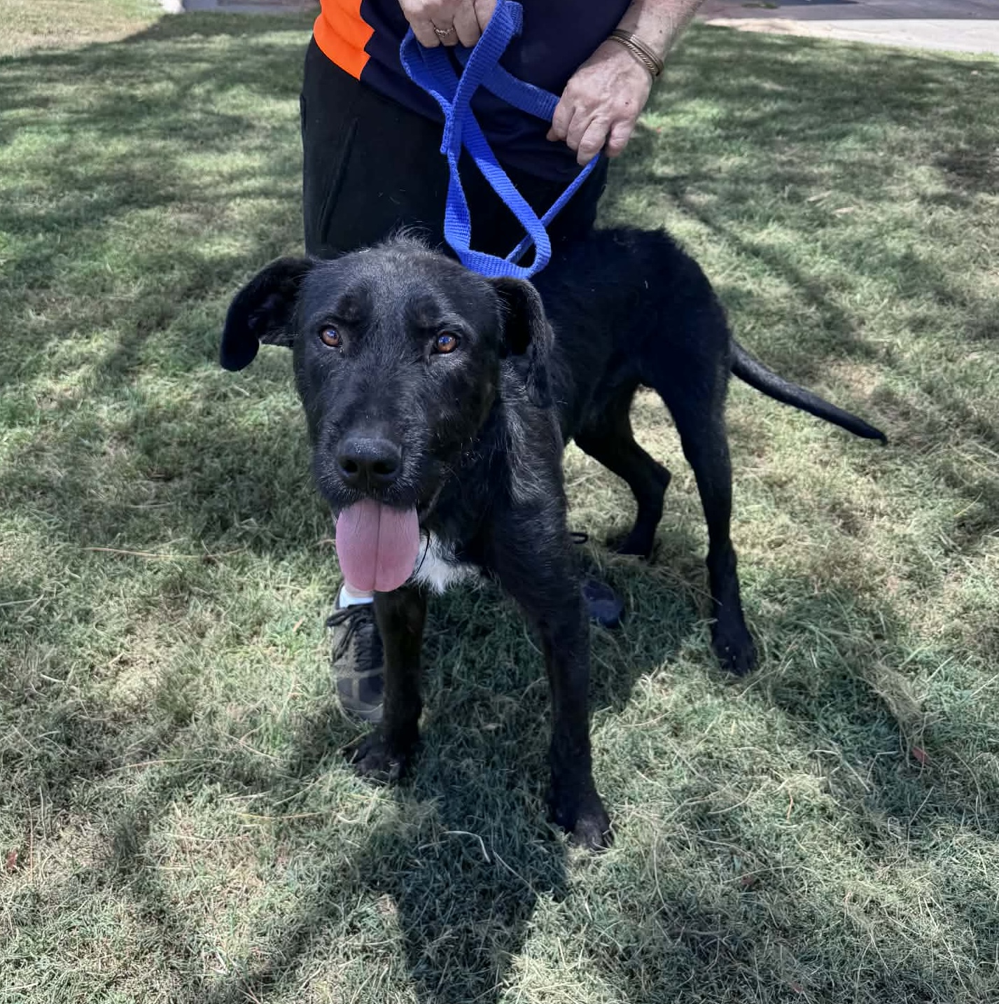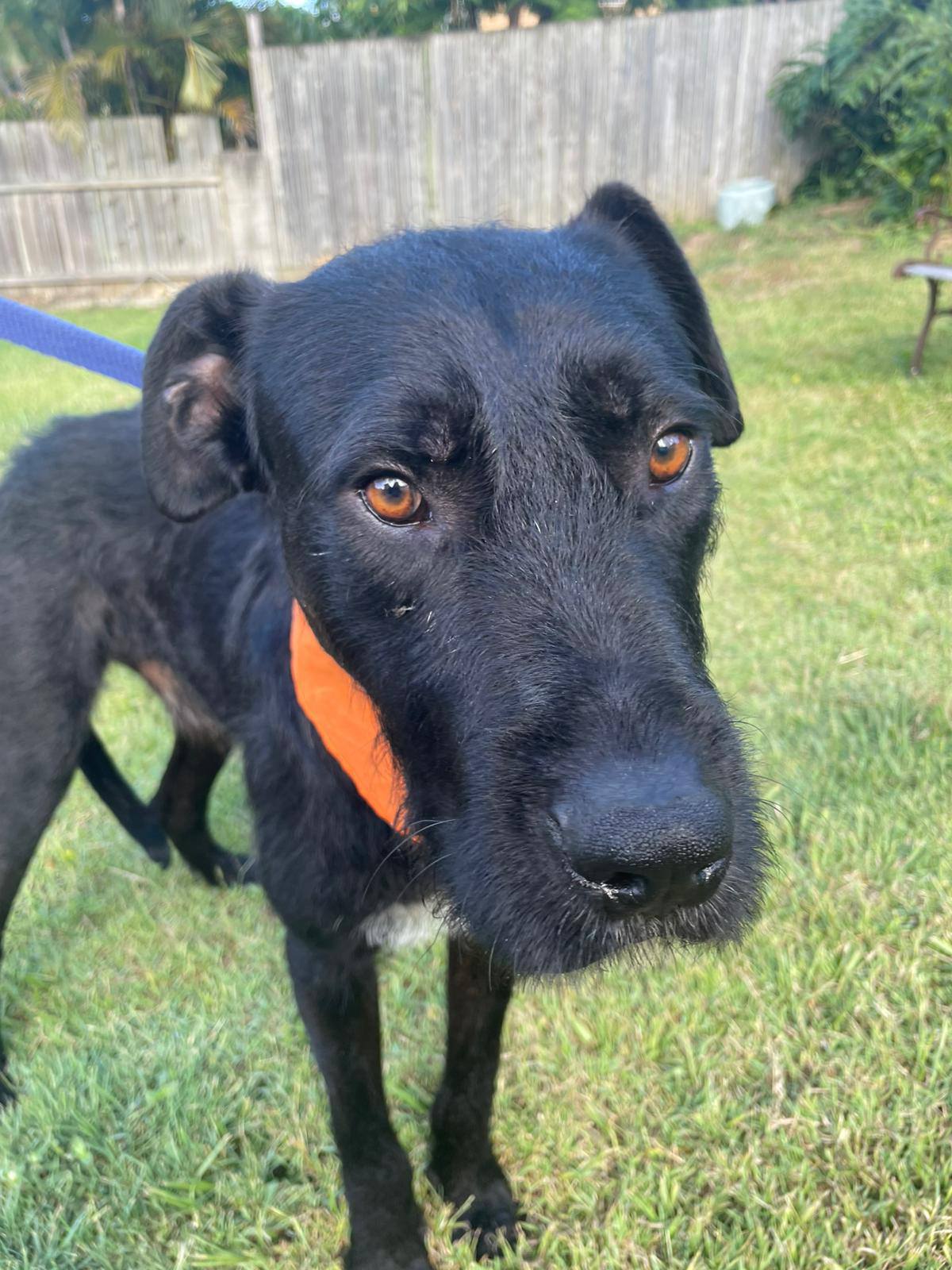 There’s so much of him to love! Oakley is a stunning black Wolfhound cross weighing in at 35kg—a handsome boy with a big heart.