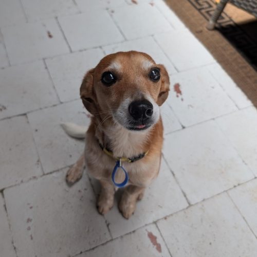 Timid at first, but once he knows you, Otis is pure love — sweet, gentle, and always up for a snuggle. He enjoys a quiet home, gets along well with other dogs, and would love someone who’s around often.