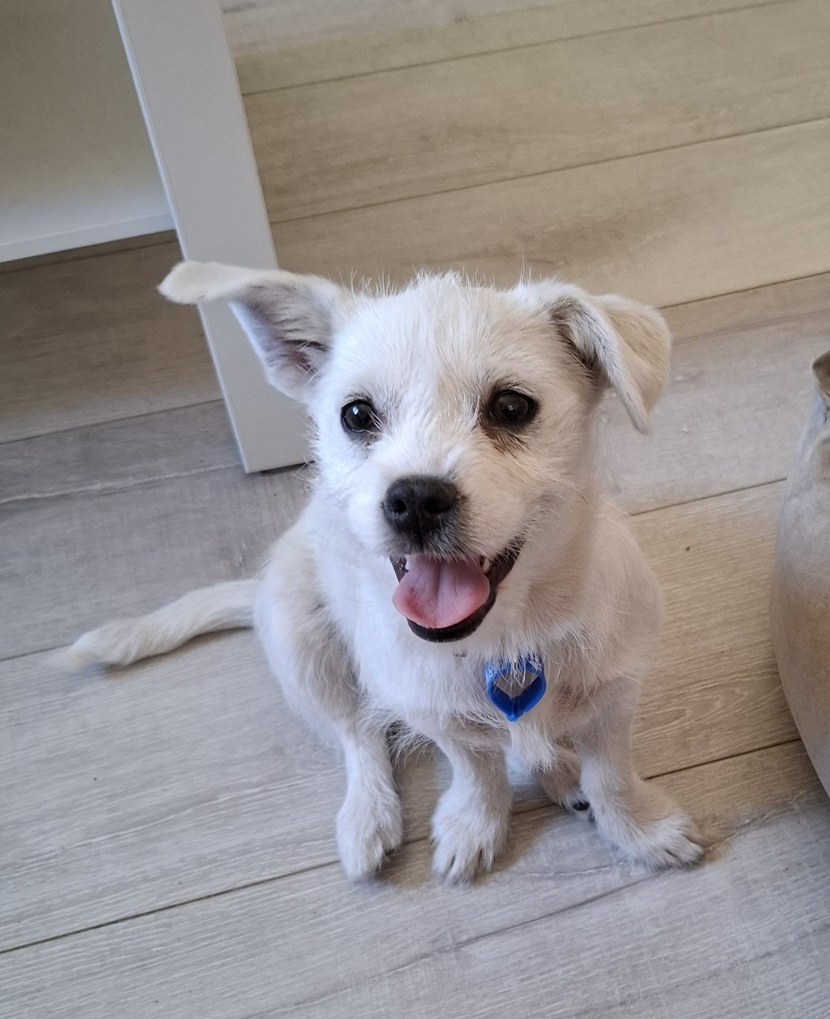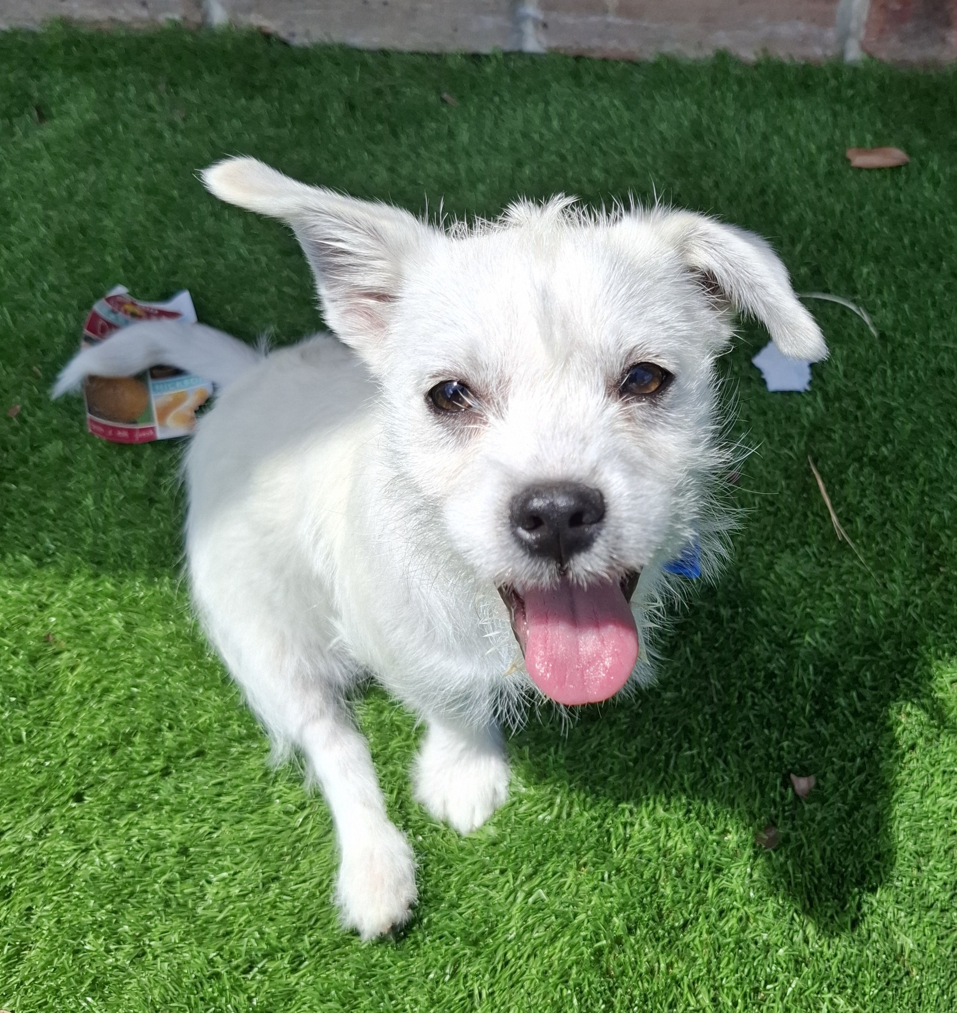Pearl is still working on her toilet training but is getting better every day. She loves her food, especially crunchy pieces of apple.