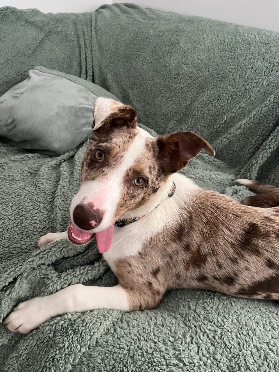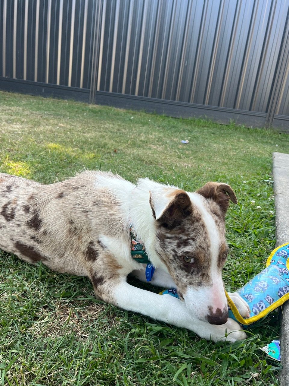 She sleeps through the night in her crate without complaints. She very rarely has accidents but she is still working on her toilet training and basic manners. She is very clever and toy driven.