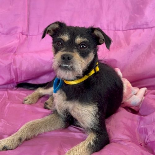 Pixie hasn’t met any cats yet, but she gets along well with small dogs. She can be a little nervous around men at first, but once she feels safe, she’s all kisses and playtime.