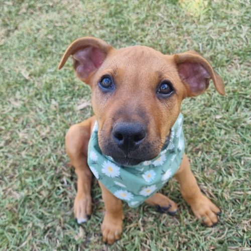 She’ll thrive with an owner who can provide consistent training, structure, and plenty of positive reinforcement. Her smart and observant nature means she picks things up quickly once she understands what’s expected of her.