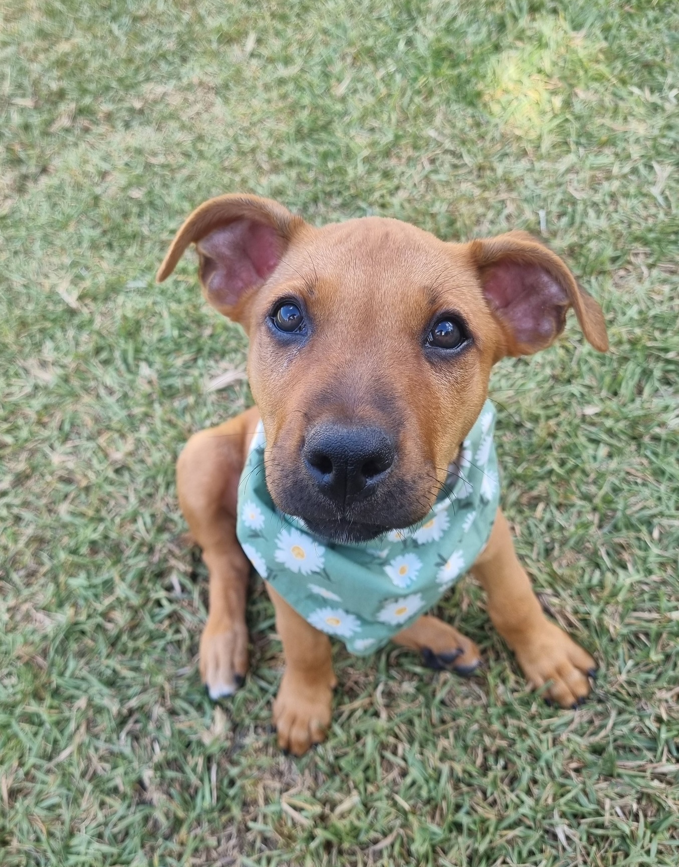 Meet Poppy! This little girl is independent and incredibly observant. She likes to take her time watching the world before jumping in, making her a very thoughtful and clever puppy. Her independent streak means she’s confident and happy exploring on her own, but she still enjoys attention and bonding with her people.