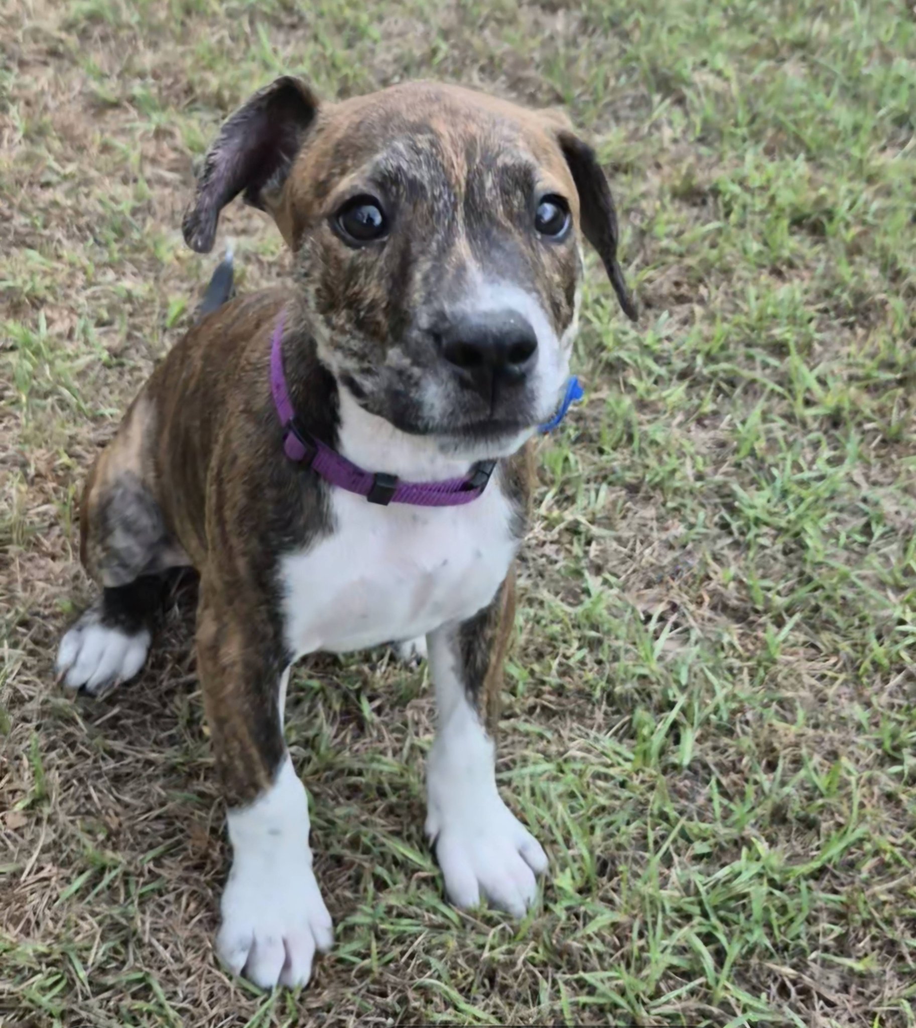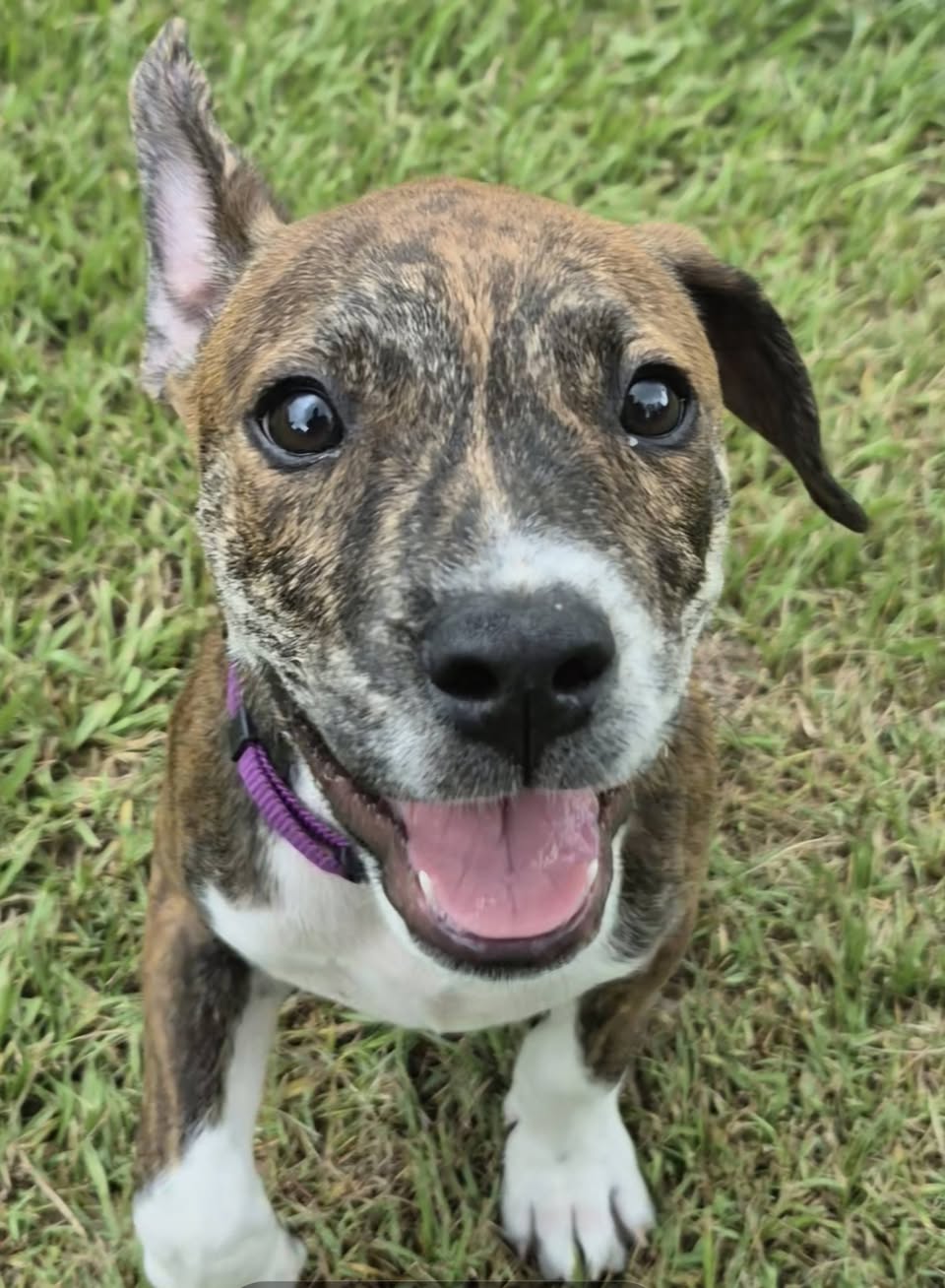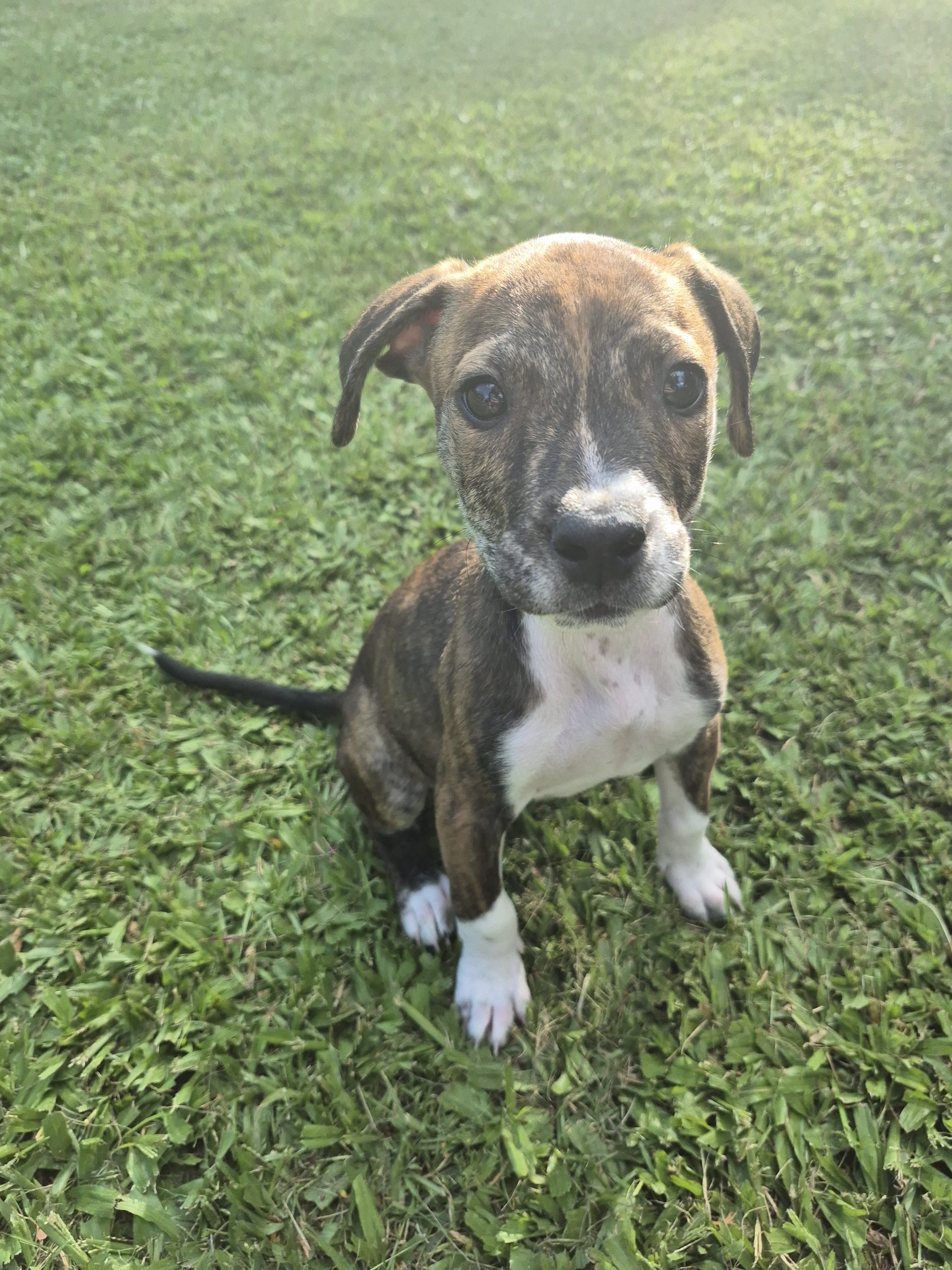 She is very food driven and trainable. She has learnt to sit already but gets distracted by other dogs so may need to be trained individually first.