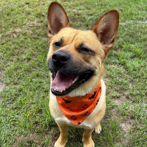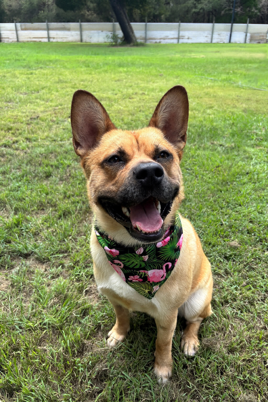 He’s a well-mannered boy who’s toilet trained, knows how to sit, and is generally pretty quiet, making him an easy fit for a relaxed home. He adores other dogs and would thrive with a high-energy canine buddy to play with. (He’s not a fan of small animals though — they’re just too interesting for him!)