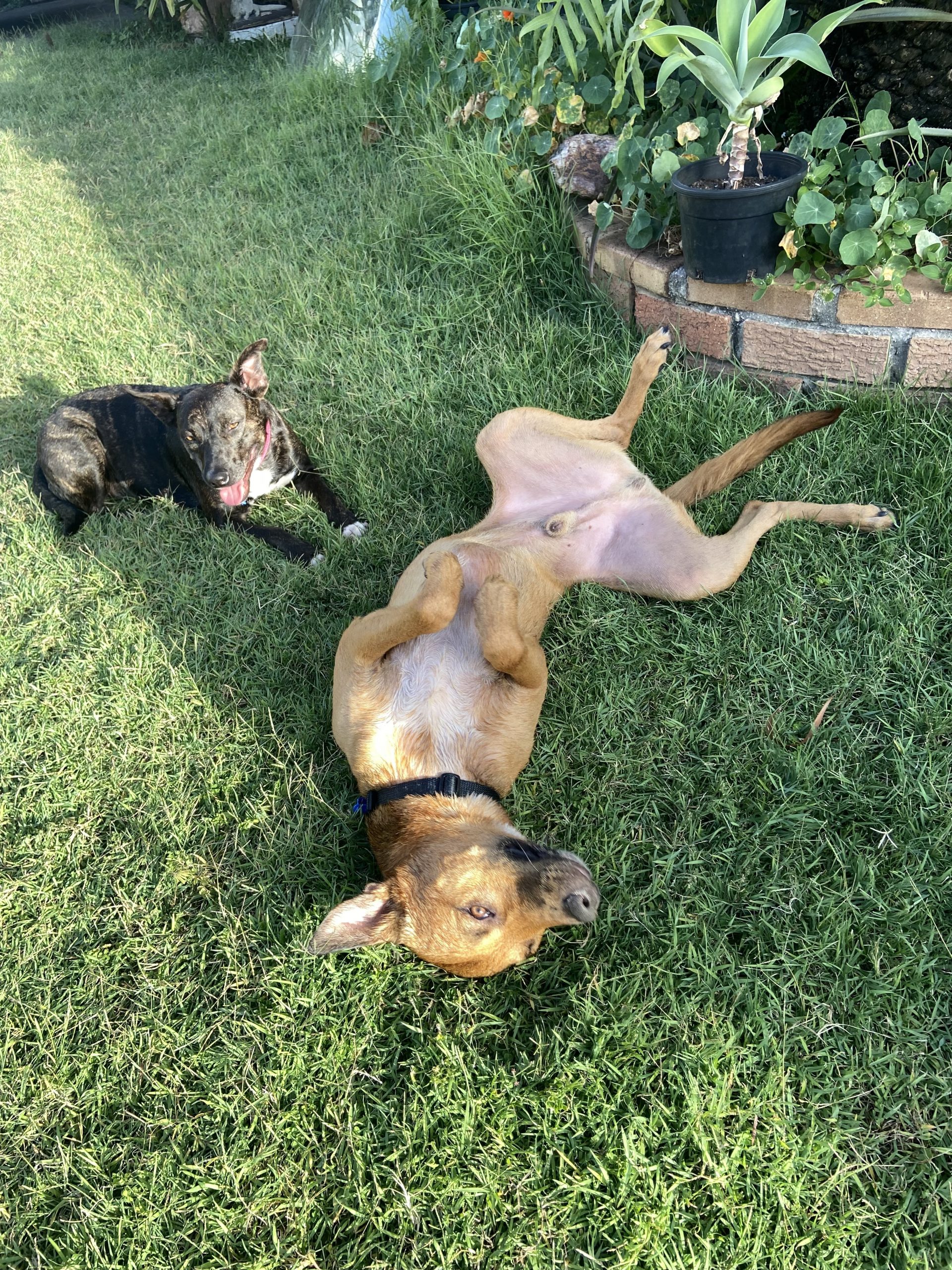 Ranger would love a home where someone is around for company, but he can also relax comfortably for a few hours indoors if he has another dog for companionship. While in foster care he has been socialised with a small female Staffy, and the pair became instant friends. They play beautifully together and even share food and water without a fuss.
