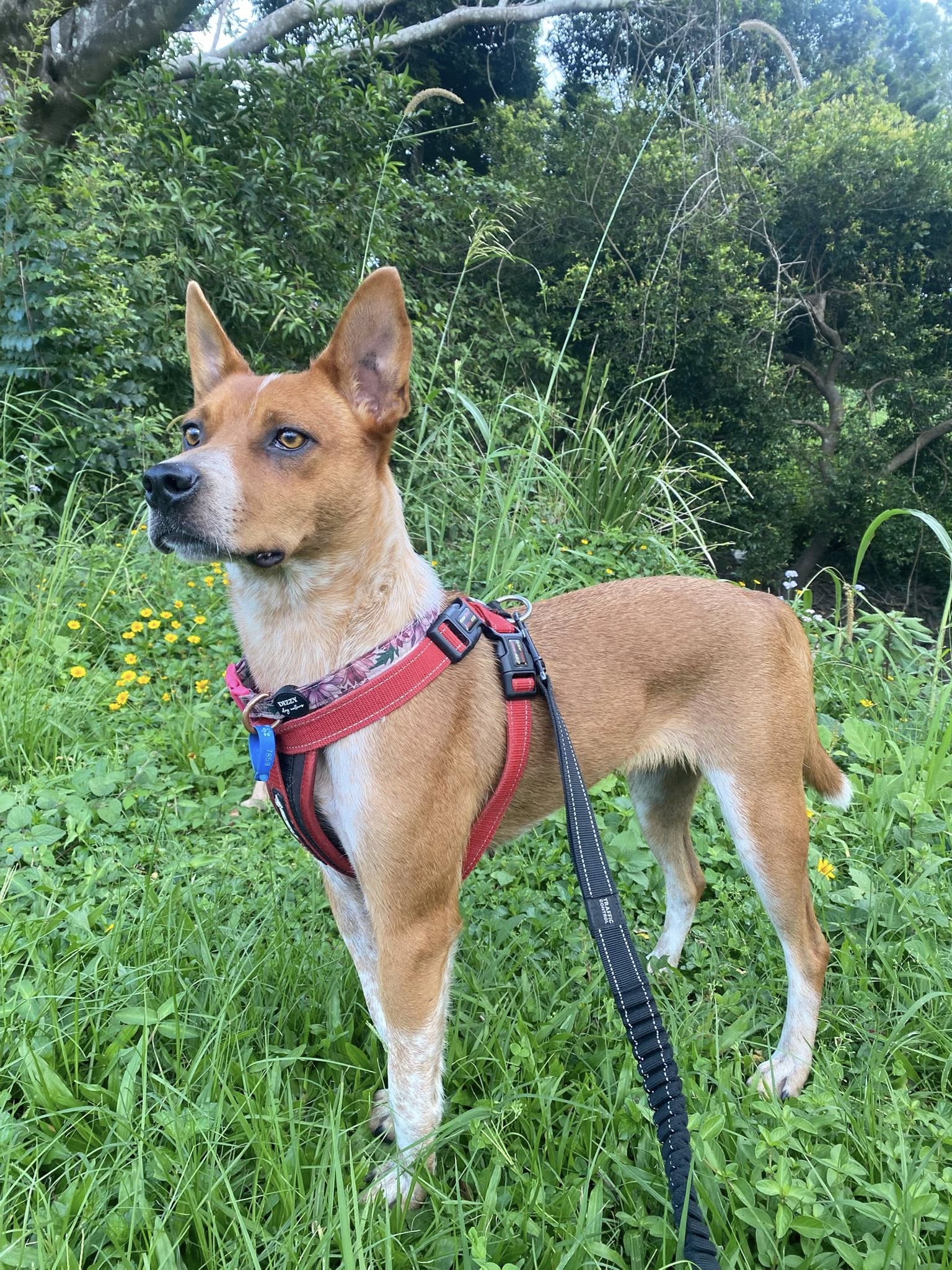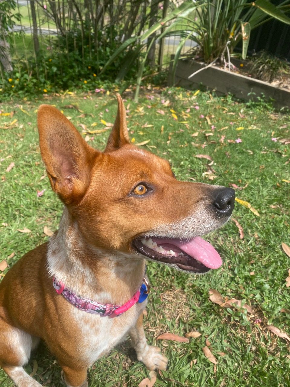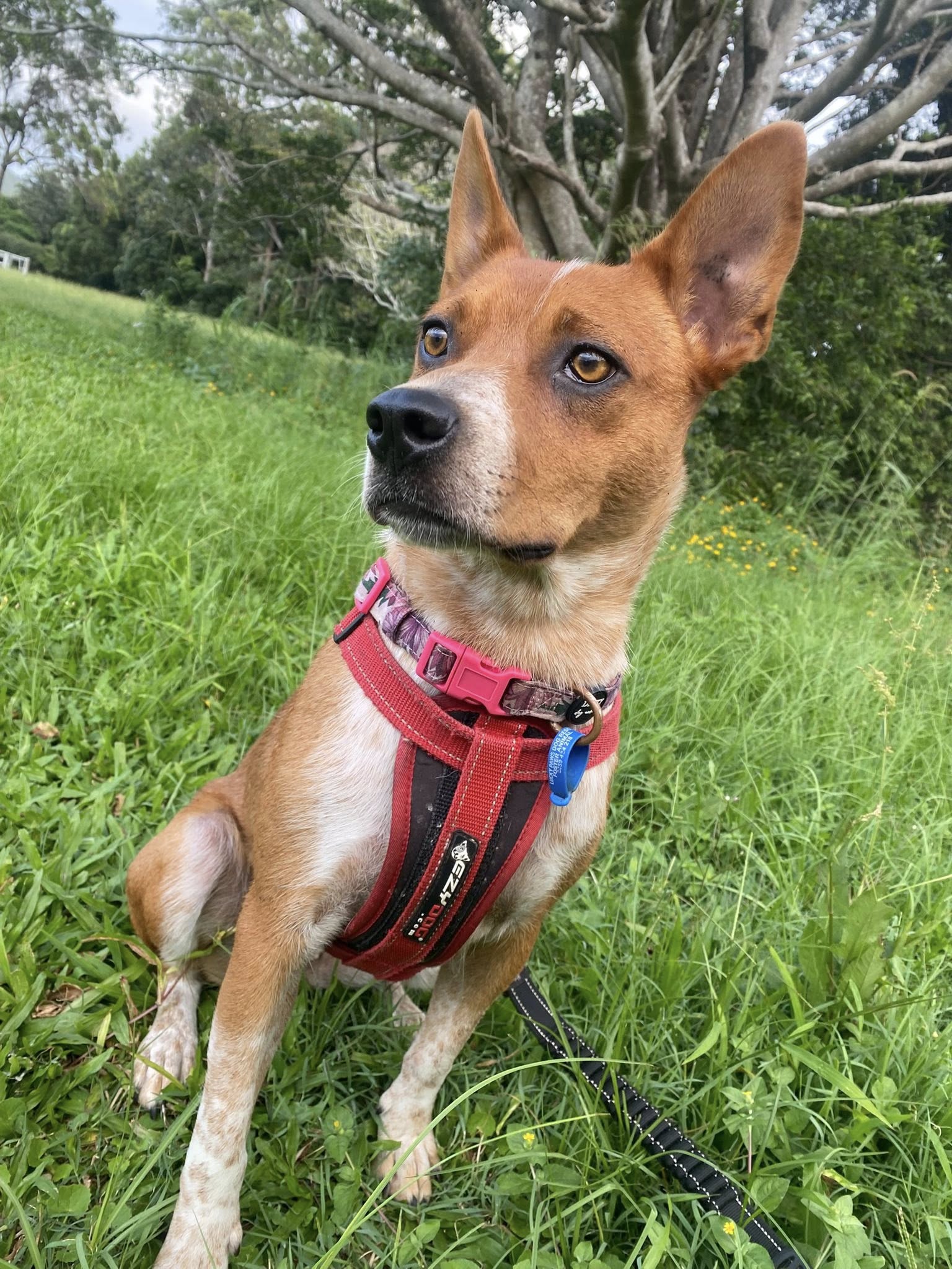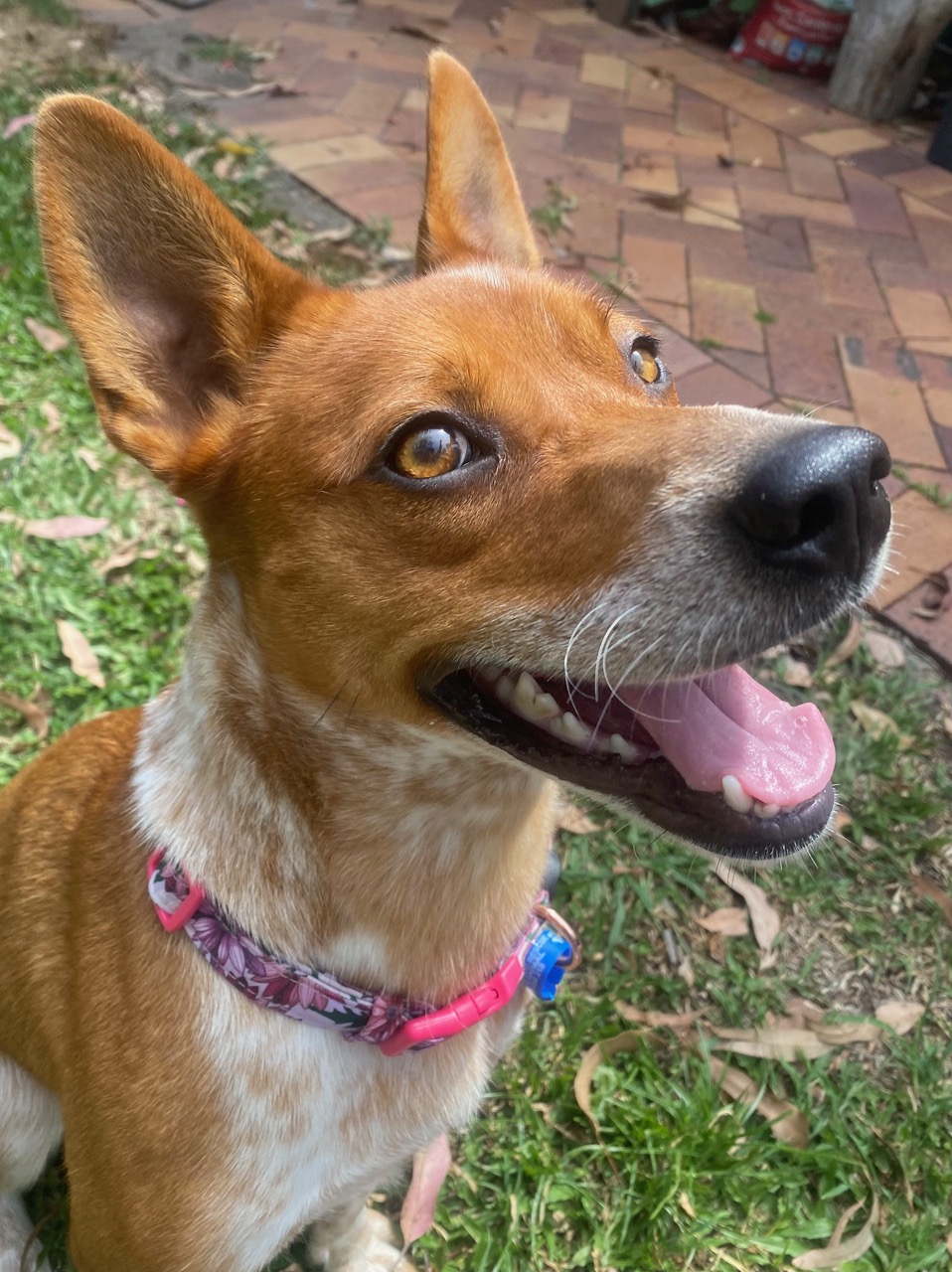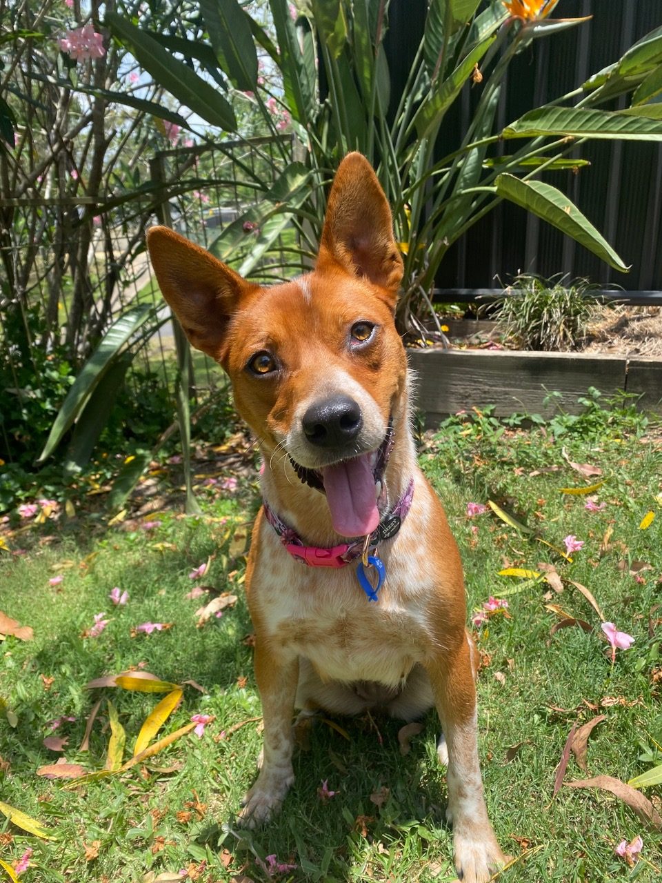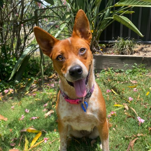 Reba loves a car trip and will be very excited to follow you on your adventures. As a cattle dog, she can also do some gentle mouthing when excited, so she will appreciate a home who can further her training.